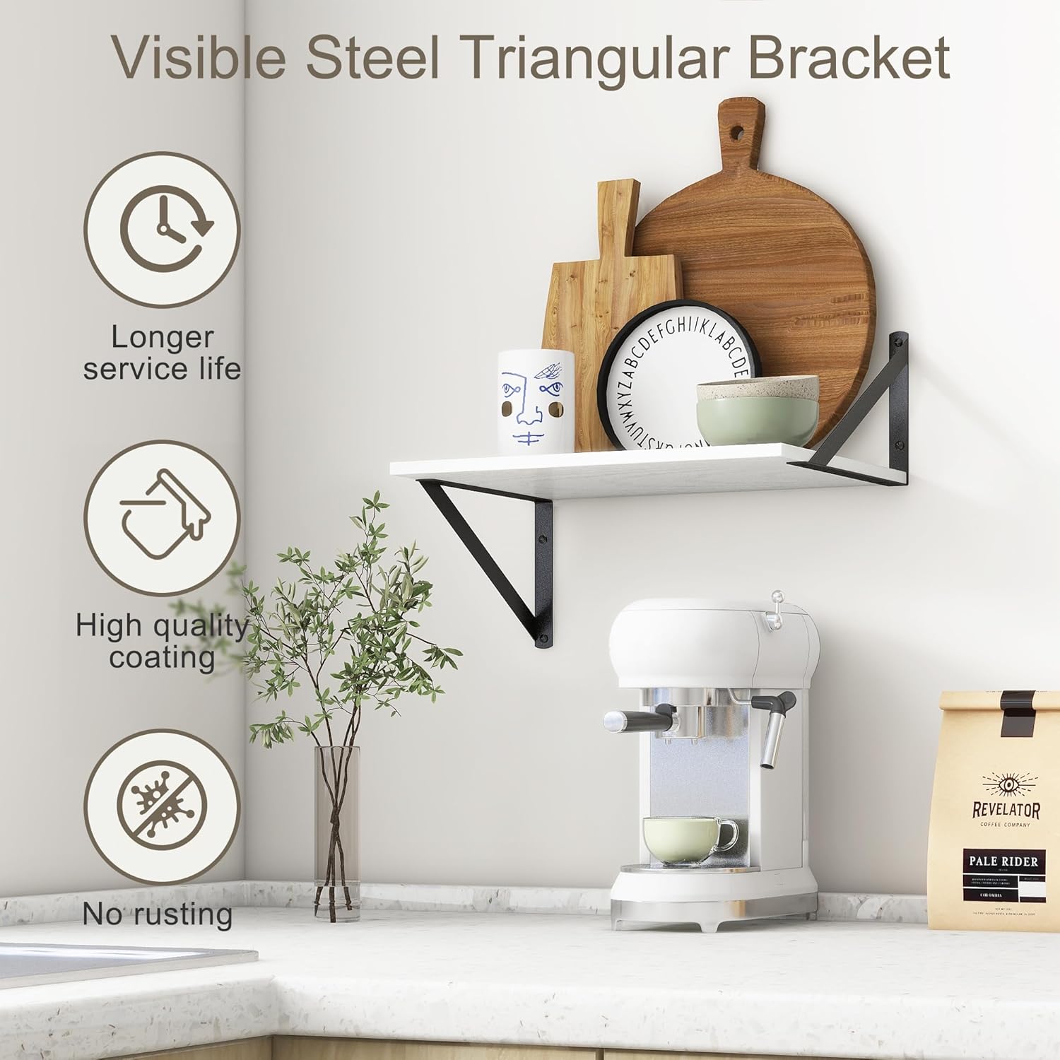 - ăFARMHOUSE RUSTIC WALL SHELFăThese floating shelves are made of premium engineered wood board and visible triangular bracket. The rustic wooden grain surface add character and warmth to any modern or traditional interior with these deep floating shelves, contrast shelves at staggering heights on the wall or mount side-by-side or in the corner for a clean streamlined look.