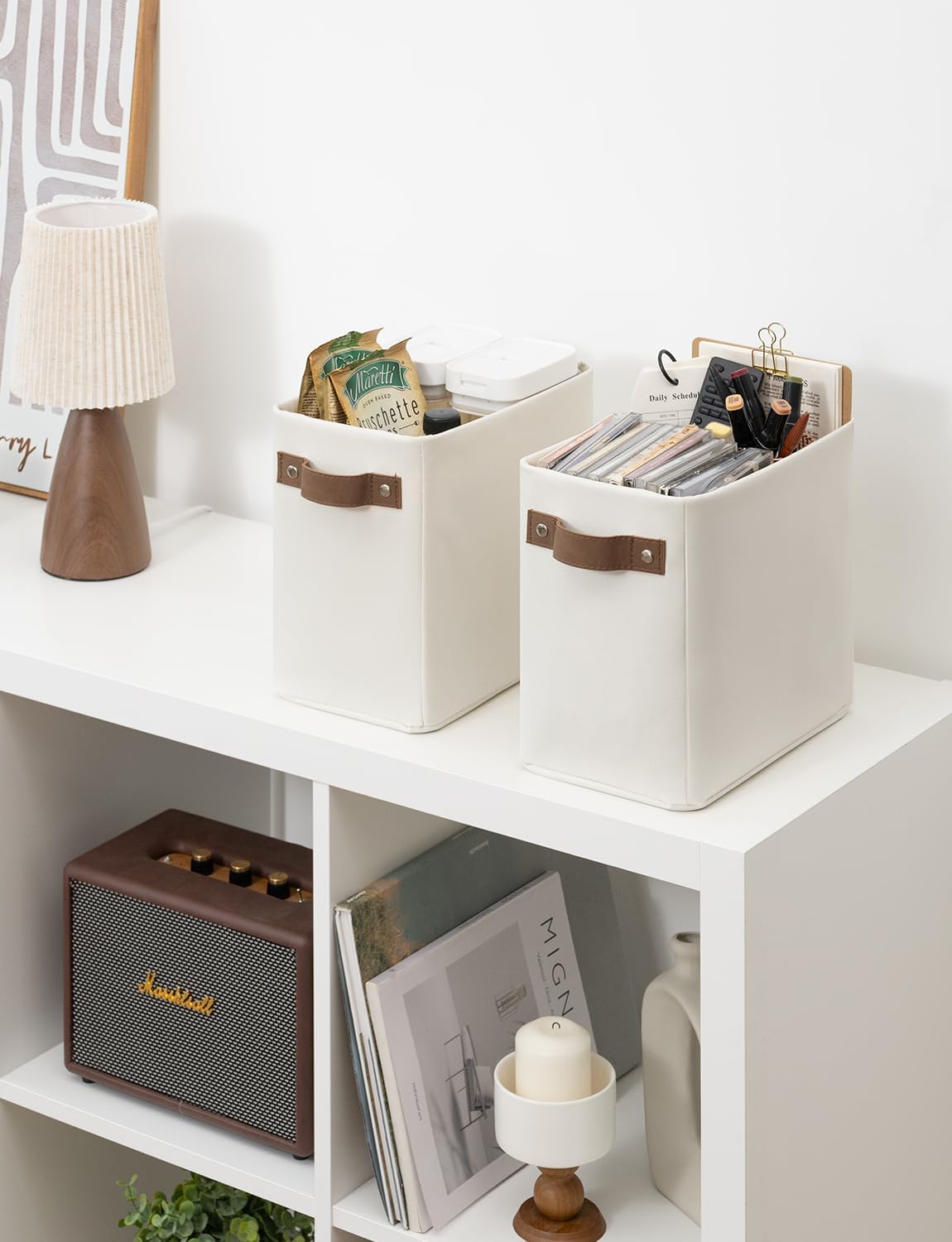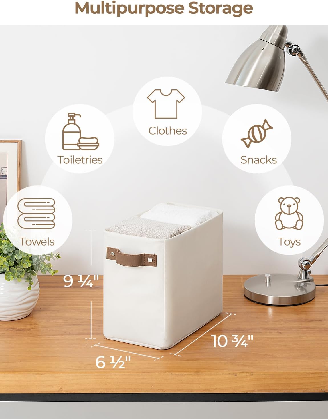 StorageWorks Narrow Storage Bins, Small Basket for Closet and Shelves, Rectangular Fabric Organizer with Handles, Toilet Paper Storage, Beige, 2-Pack