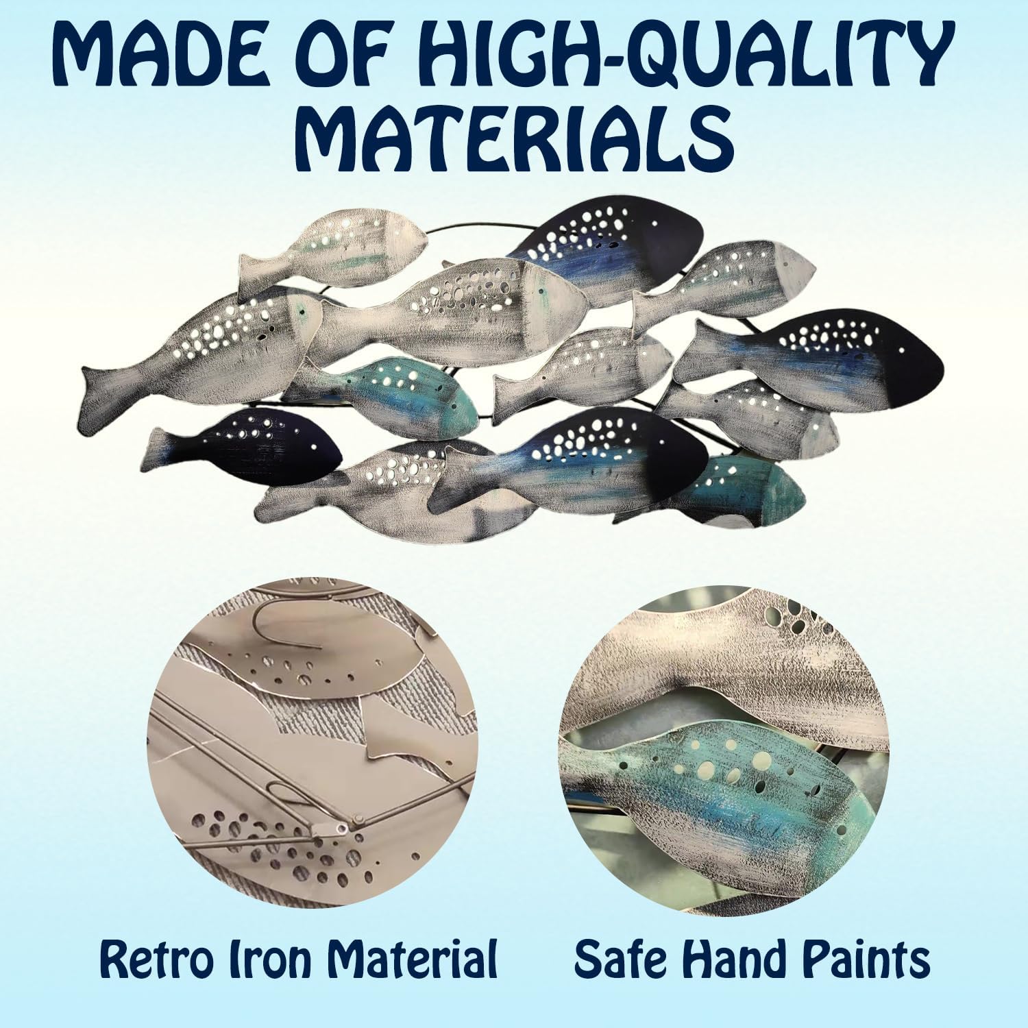edaknez Coastal Metal Fish Wall Decor, Large Nautical Wall Art, School of Fish Wall Sculpture, for Living Room, Bedroom Beach or Ocean Decor (C 50 inch x 21 inch)