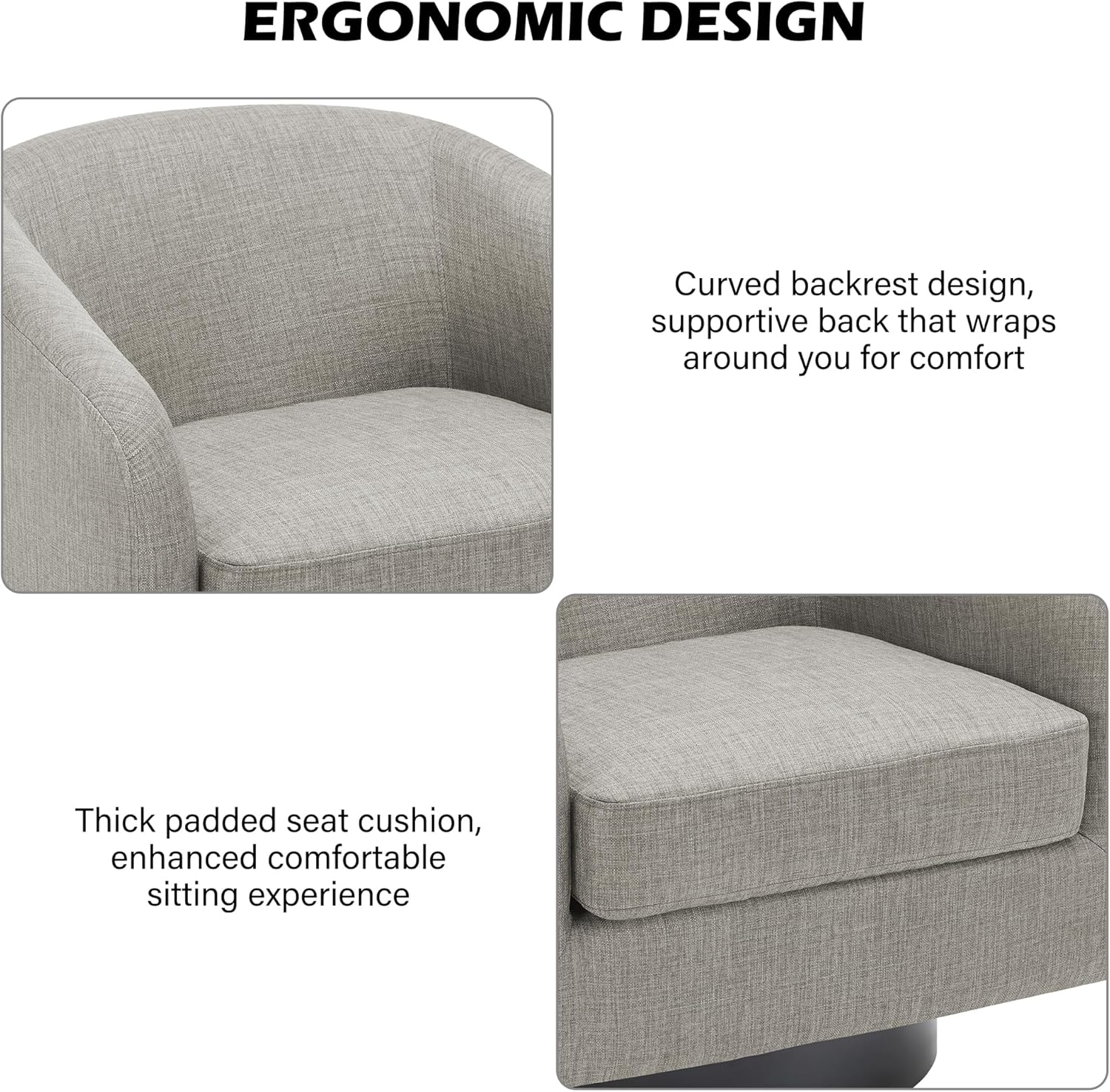 Swivel Barrel Accent Chair, Modern Round Linen Arm Chair for Living Room, Bedroom, Comfy Club Reading Chairs for Adults(Linen Fabric, Khaki, Set of 1
