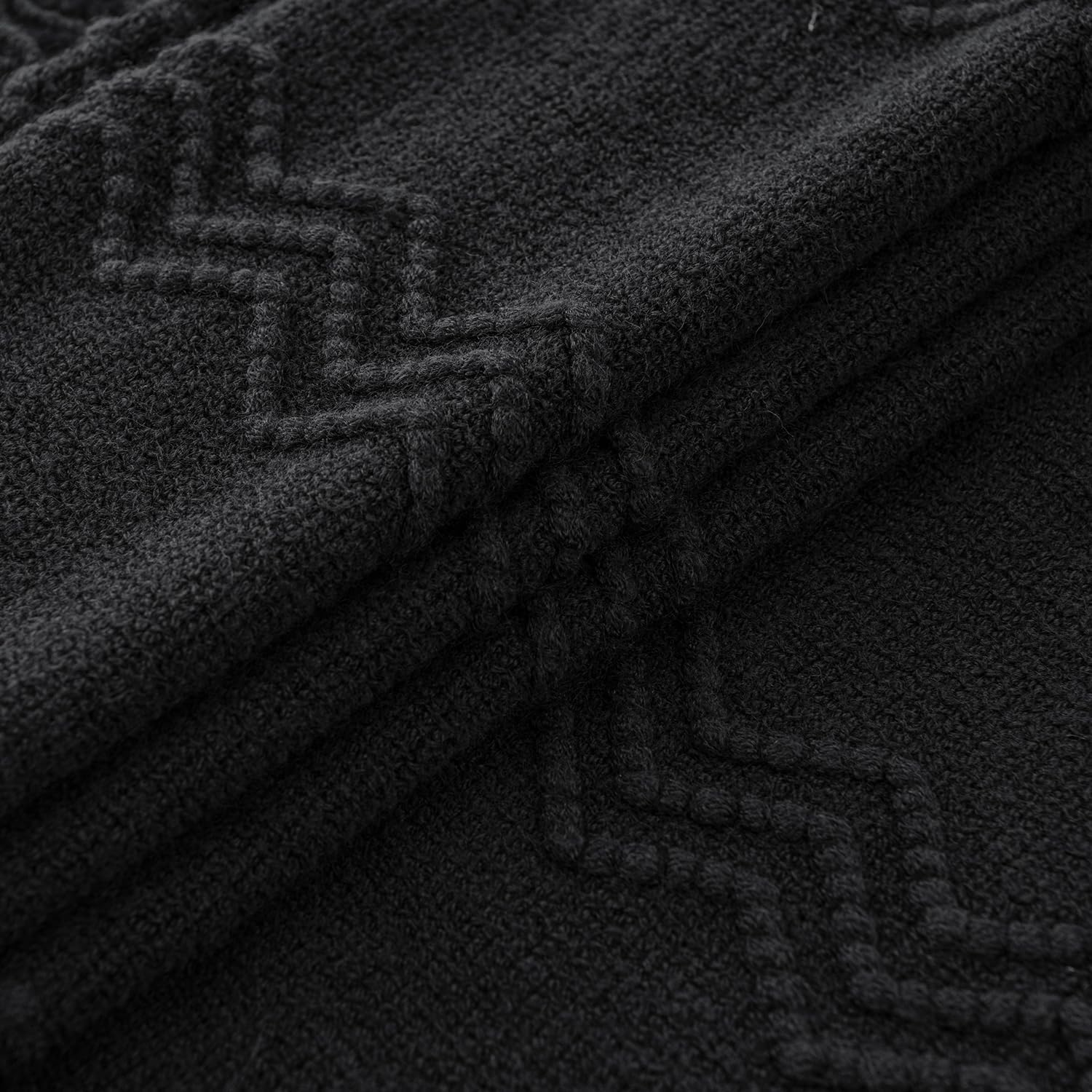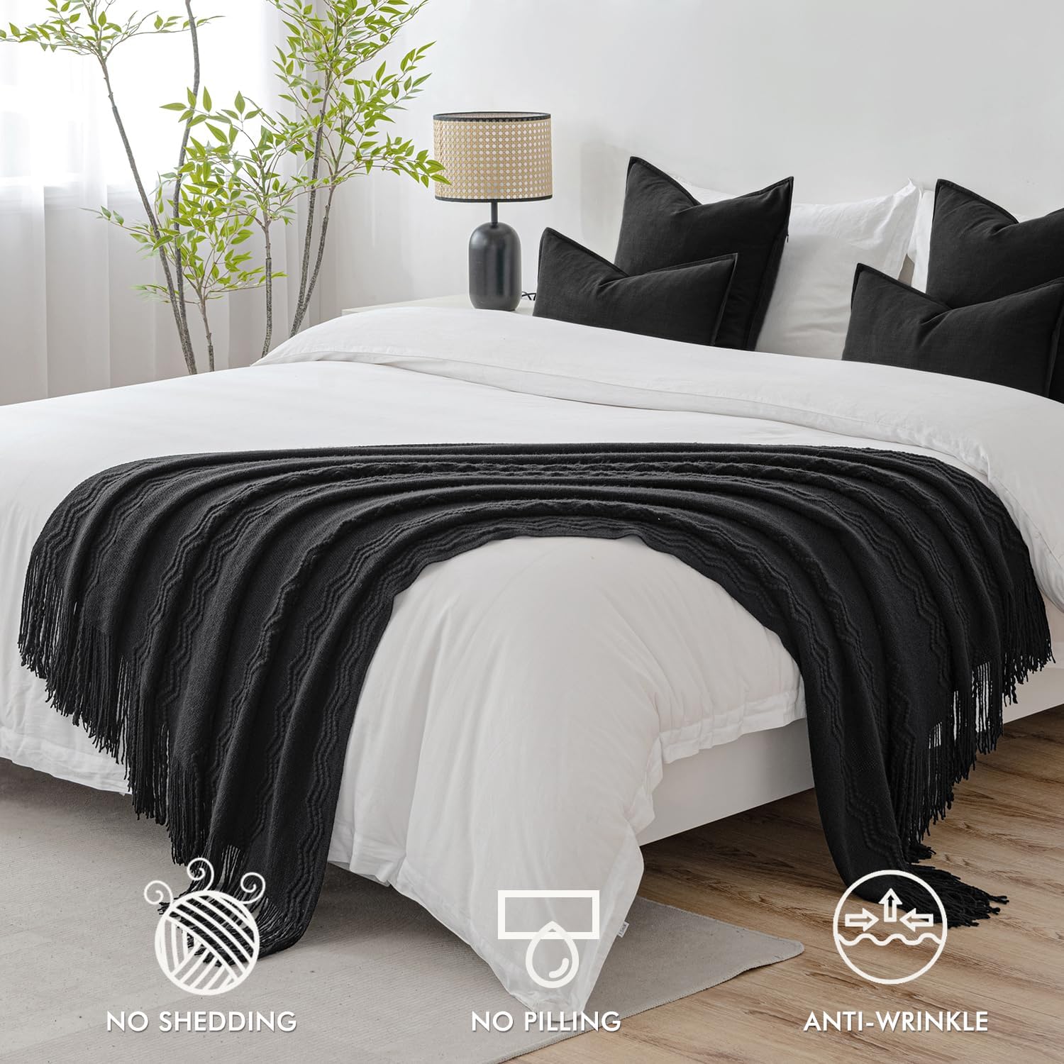 MIULEE Black Knitted Throw Blanket for Couch Textured Knit Blanket with Tassels Cozy Woven Boho Bed Blanket for Sofa Bed Chair Acrylic Wave Pattern 50"x60"