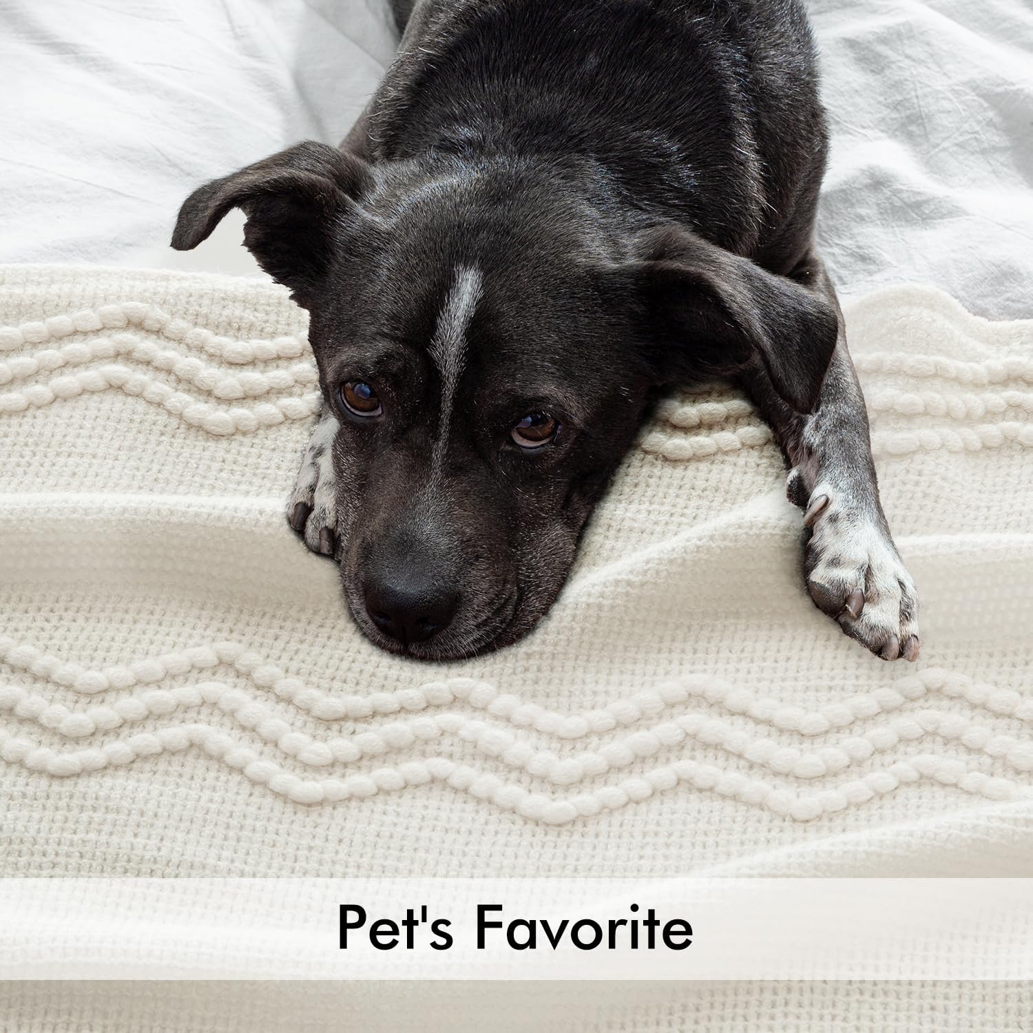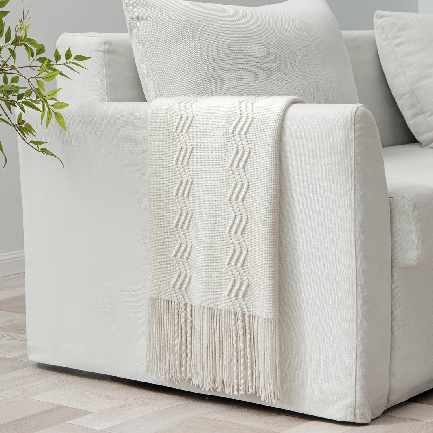 MIULEE Off White Knitted Throw Blanket for Couch Textured Knit Blanket with Tassels Cozy Woven Boho Bed Blanket for Sofa Bed Chair Acrylic Wave Pattern 50"x60"