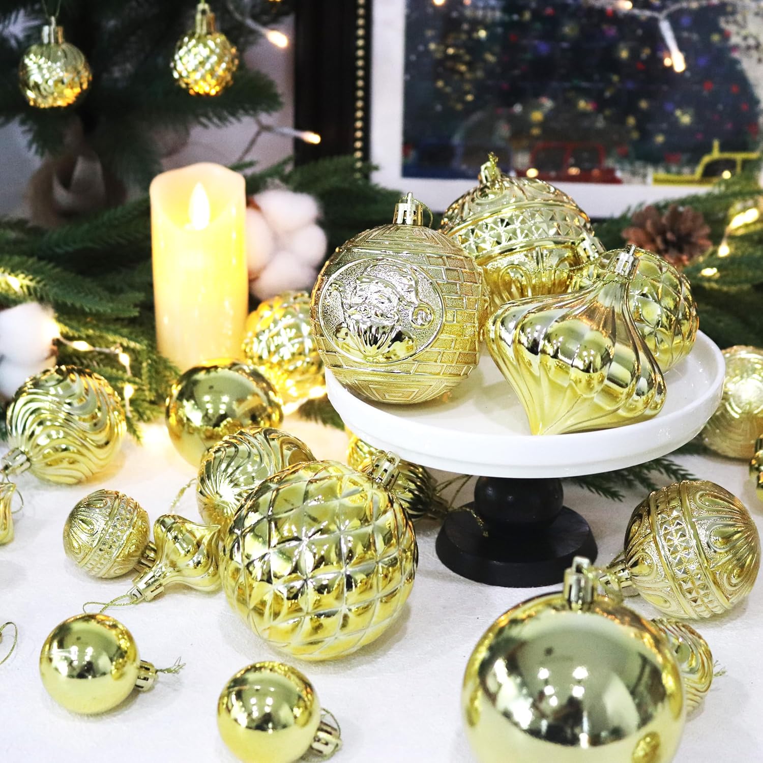 Christmas Ornaments Set with 36pcs Shatterproof Christmas Tree Decorations Multi-Size Christmas Ball Ornaments with 7 Styles Gold