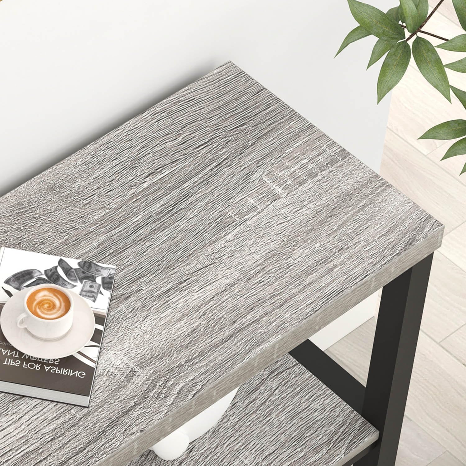 - Modern Sofa Table: Blending light gray wood grain finish with a black metal frame, this entry table combines rustic charm with industrial aesthetics. Sleek vertical lines exude minimalist styles, making the modern entrance table a stylish furniture