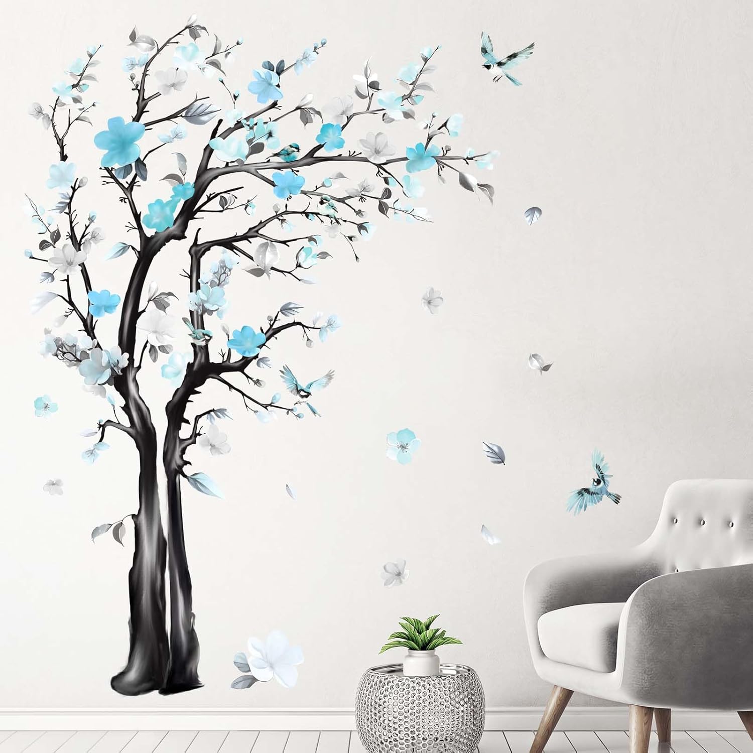 Large Watercolor Tree Wall Decals - Flower Tree Branch Wall Stickers - Bedroom Living Room Sofa TV Background Home Wall Decor