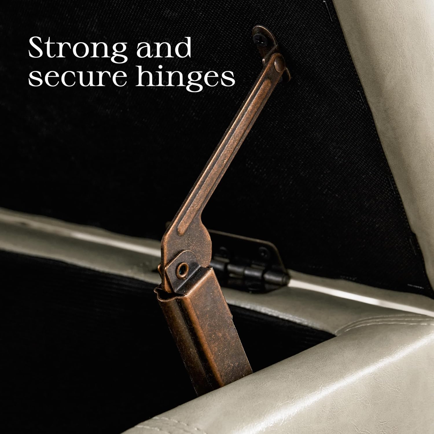 - SAFE & DURABLE: HUIMO Coffee Table Ottoman with Storage features a solid wood frame and spiral wood legs. The spiral wood legs add a refined element to a stable base. Inside we have used safe and durable hinges, which hold firmly when you open the workbench to keep you safe