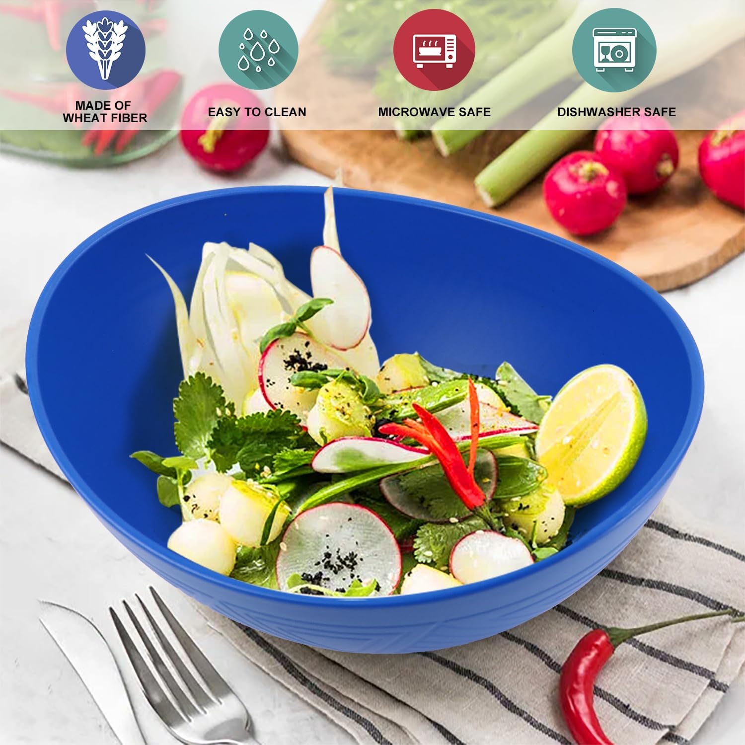 Large Wheat Straw Bowls,Big Salad Bowls set of 2,Unbreakable Serving Bowls Microwave & Dishwasher Safe, Alternative for Plastic Bowl Sets for Kitchen.Blue