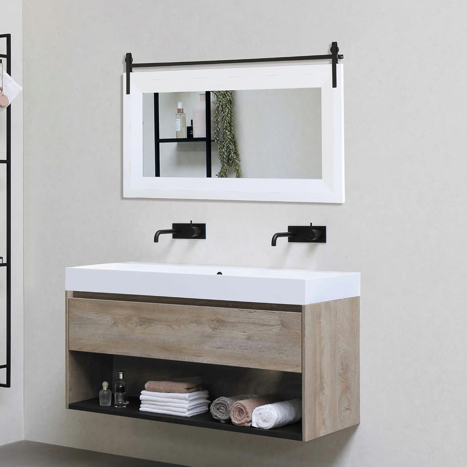 ALBAD Farmhouse Mirror for Wall Decor Wood Framed Bathroom Vanity Mirrors Vertical/Horizontal Hanging Barn Door Style Mirror for Living Room Bathroom Bedroom Entryway White