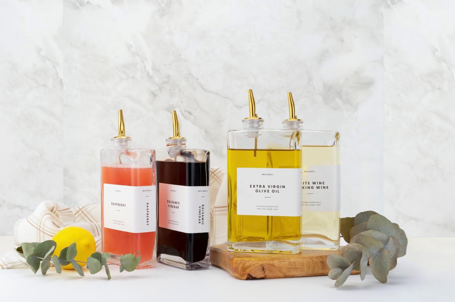 Molimoli Olive Oil Dispenser Bottle for Kitchen, Automatic Pourer, Glass Dispenser for Kitchen, Olive Oil Cruet, | Set of 4 - Gold
