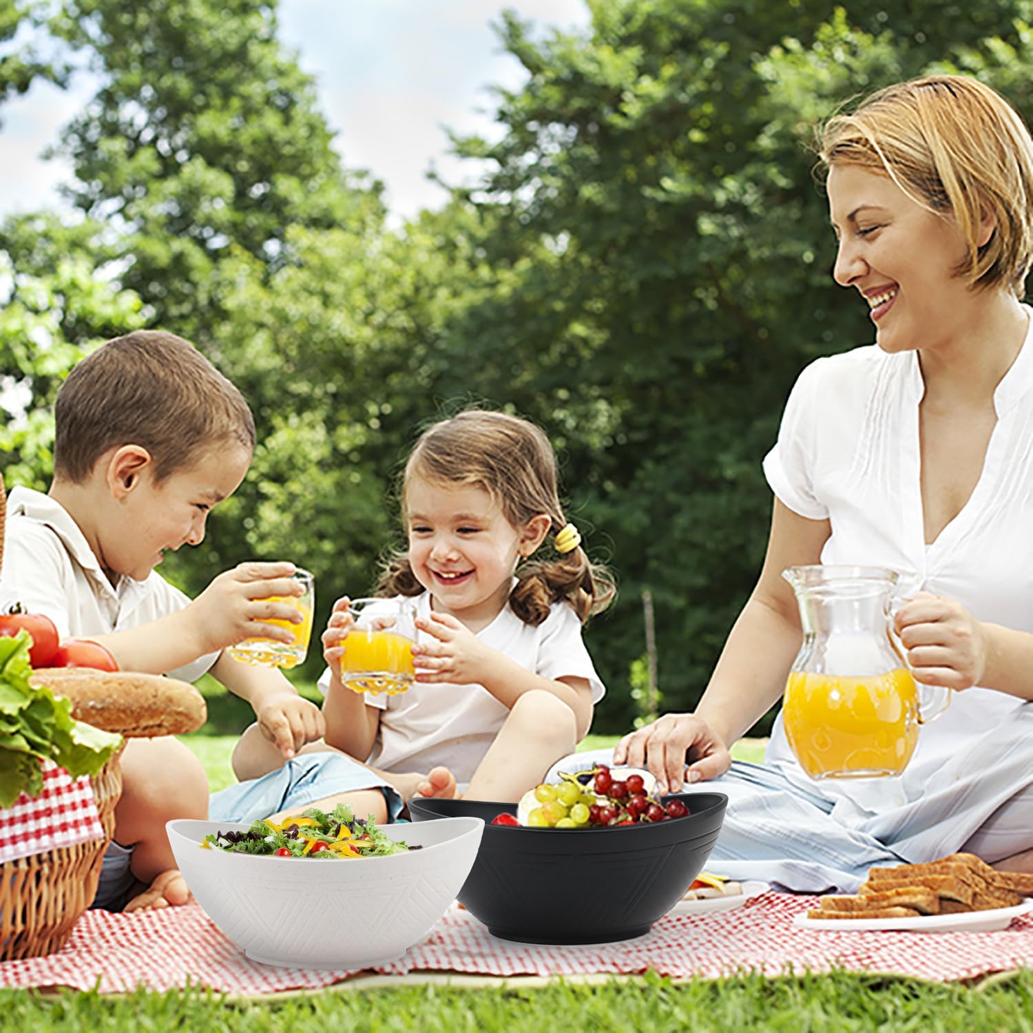 - [Unbreakable and Lightweight]:Compare to traditional bowls,our kitchen bowls are lightweight and sturdy. They are designed to withstand accidental drops and bumps.These plastic salad bowls are a convenient option for daily use, picnics, camping and parties.