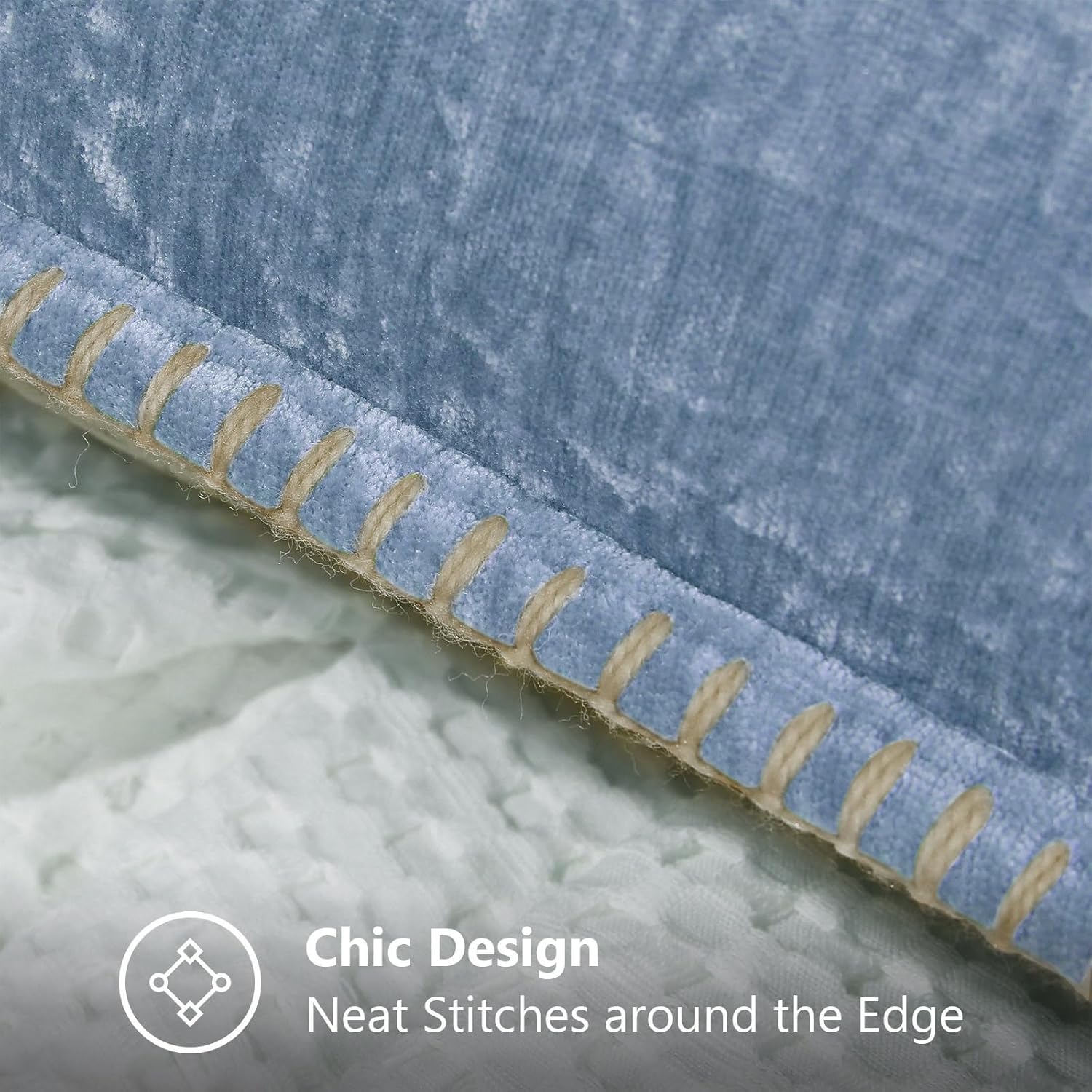 decorUhome Chenille Soft Throw Pillow Covers 12x20 Set of 2, Lumbar Velvet Farmhouse Neutral Decorative Euro Pillow Covers with Stitched Edge for Couch Sofa Bed Home Decor, Blue