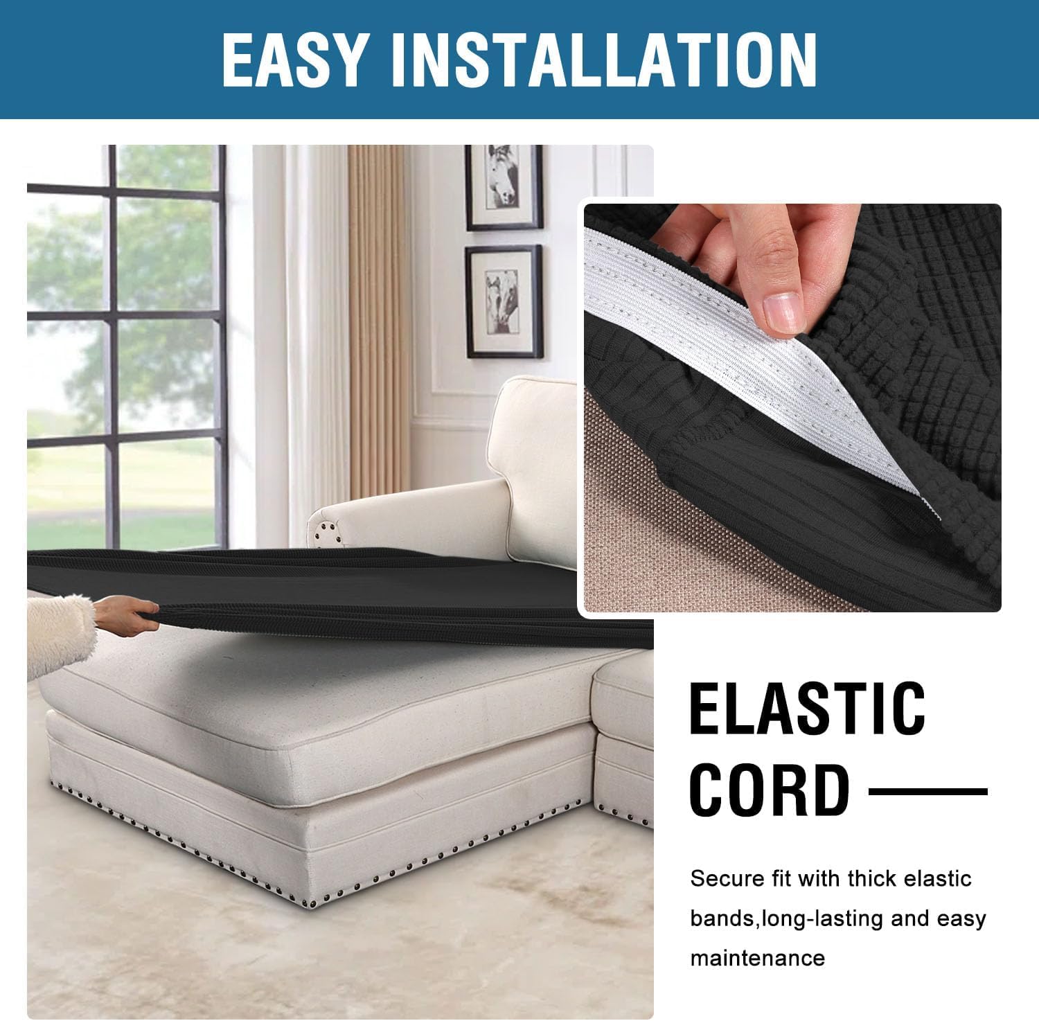 - GREAT FIT: Set of 1. This innovated cushion slipcover is crafted from durable and soft high stretch knitted jacquard fabric. Large Size Chaise Lounge Cover for Both Left/Right L Shaped Couch(fits up to 38-45 inch width, 64-72 inch depth, 3-8 inch thickness). Feature one-size-fits-most, kindly measure before ordering