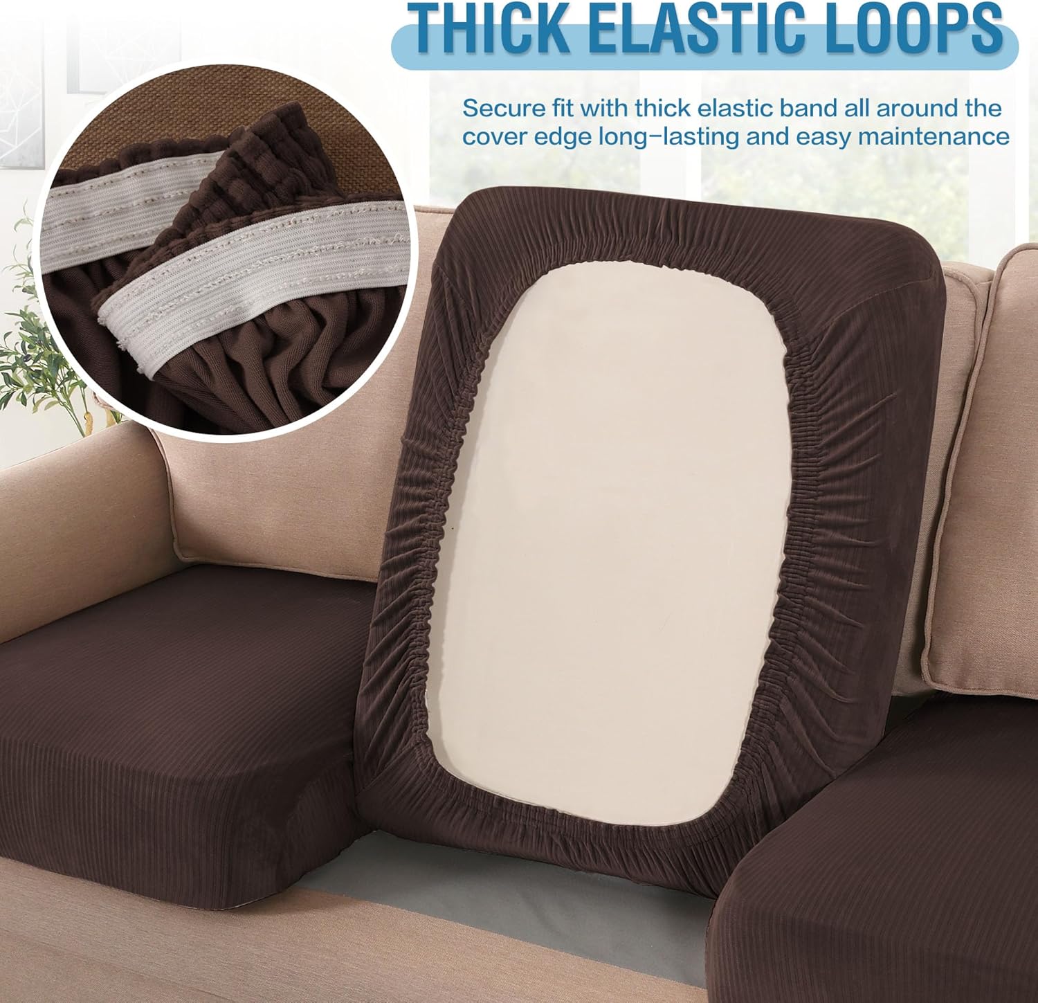H.VERSAILTEX Velvet Stretch Couch Cushion Cover Plush Cushion Slipcover for Chair Loveseat Sofa Cushion Furniture Protector Seat Cushion Sofa Cover (3 Piece Sofa Cushion Covers, Brown Striped)