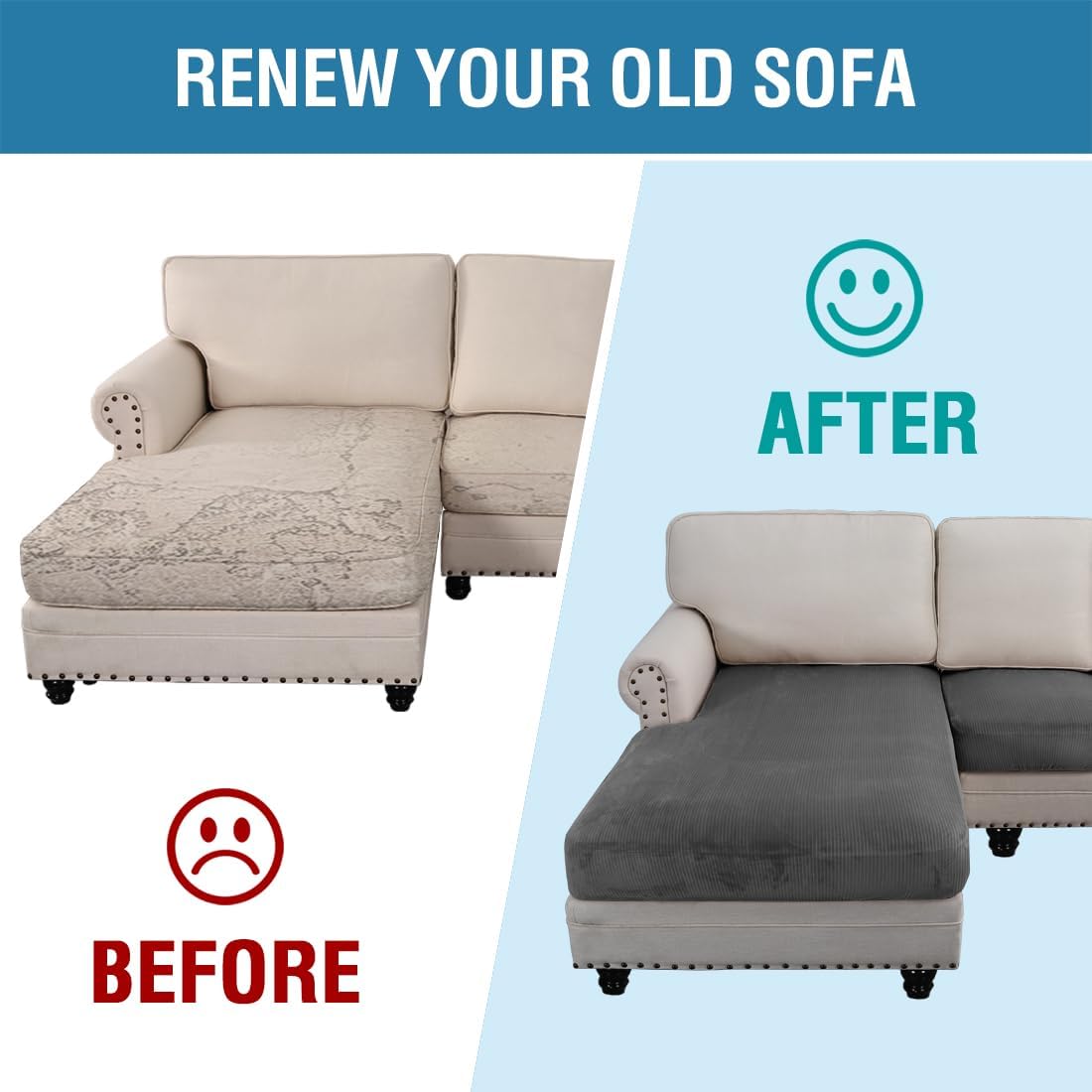 - UPGRADED THICKER: Each individual cushion cover fits up to 19.6-29 inch width, 21.6-30.5 inch depth, 3-8 inch thickness while the chaise cover fits up to 32-38 inch width, 54-62 inch depth, 3-8 inch thickness. Feature one-size-fits-most, kindly measure before ordering.