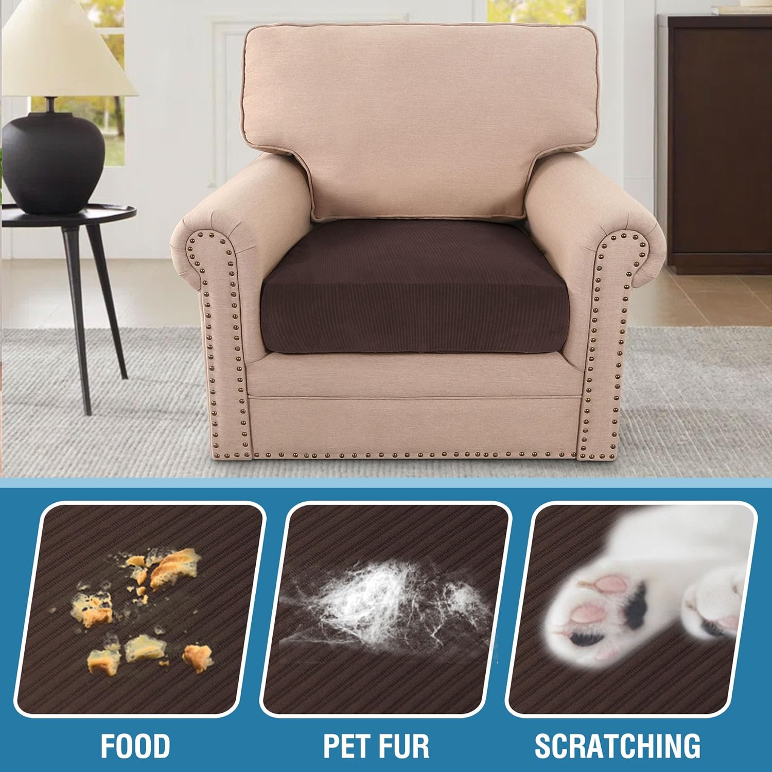 - INCREDIBLY COMFORTABLE VELVET: Products passed GLOBAL RECYCLED STANDARD certificate. 1 piece included. Crafted from luxurious velvet plush fabric with unique striped cuts, feature thick, soft, smooth, anti-wrinkle, no fading, durable as well as highly stretch. Protect your cushion furniture from daily wears and tears, stains, kids, scratches from pet claws, dogs or accidental spills