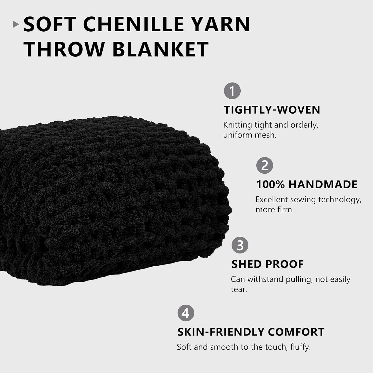 L'AGRATY Chunky Knit Blanket Throw: Soft Chenille Yarn Throw Blanket 50x60 - Handmade Thick Cable Crochet Blanket - Large Chunky Rope Throw Blanket for Couch Sofa Bed Home Decor(Black)