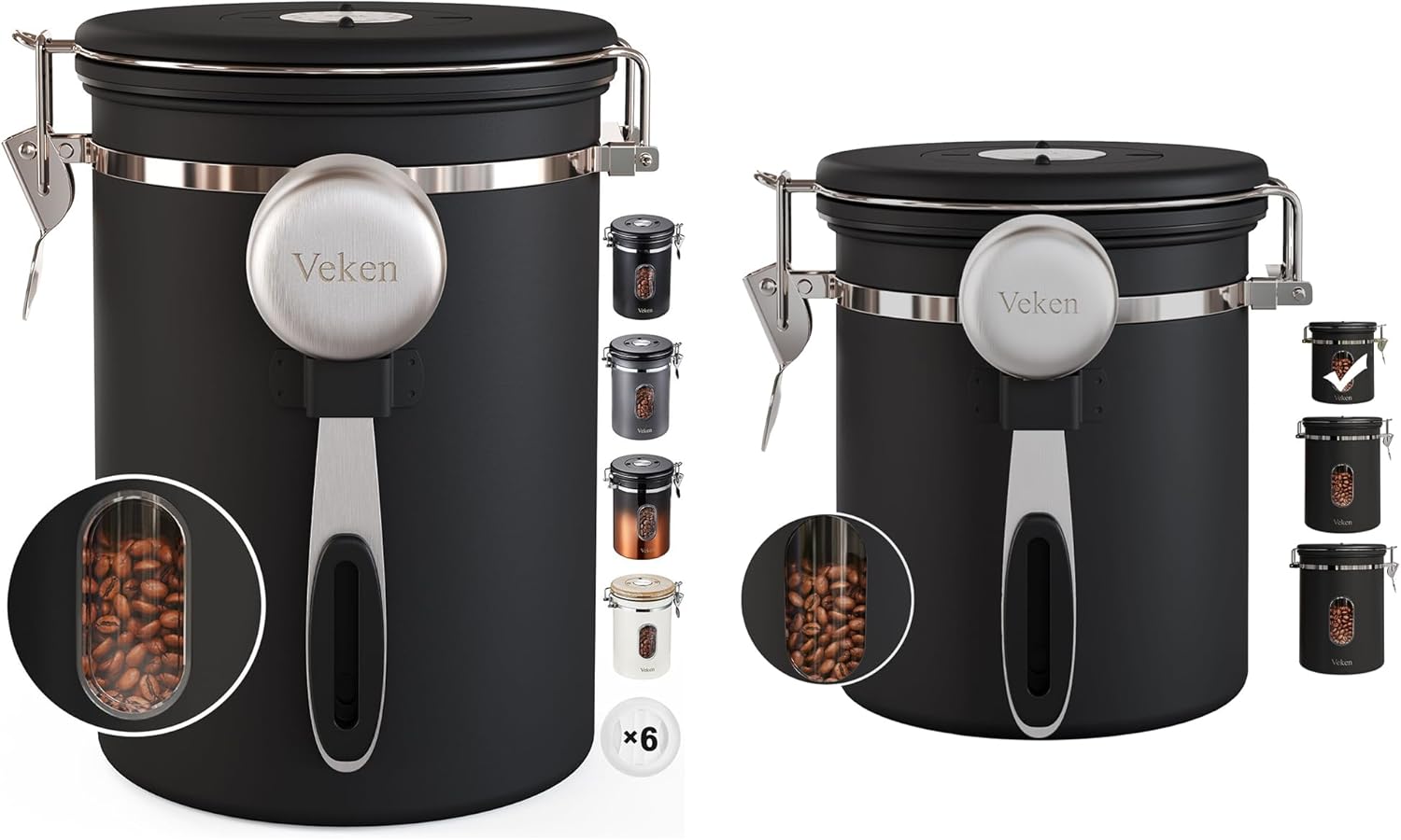 - Why purchase this product:The affordable price, user-friendly functions and elegant design makes this coffee canister a great addition to your kitchen; In addition, our coffee canister is a great storage container for friends and family; Purchase one today and enjoy the benefits of owning a Veken coffee canister