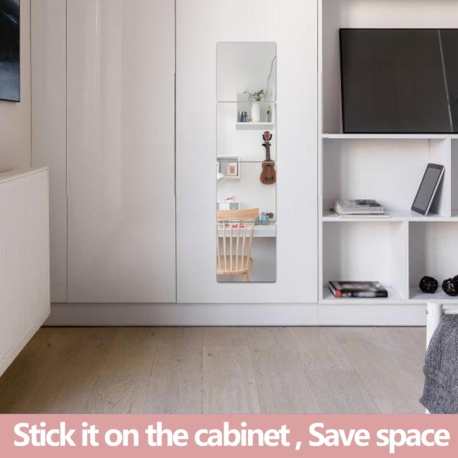 Unbreakable Full Length Wall Mirror,The Door Mirror,4Pack 14''x14'',Acrylic Kids Shatterproof Plexiglass Long Mirrors for Bedroom Closet,Children Non Glass Stick on Mirrors