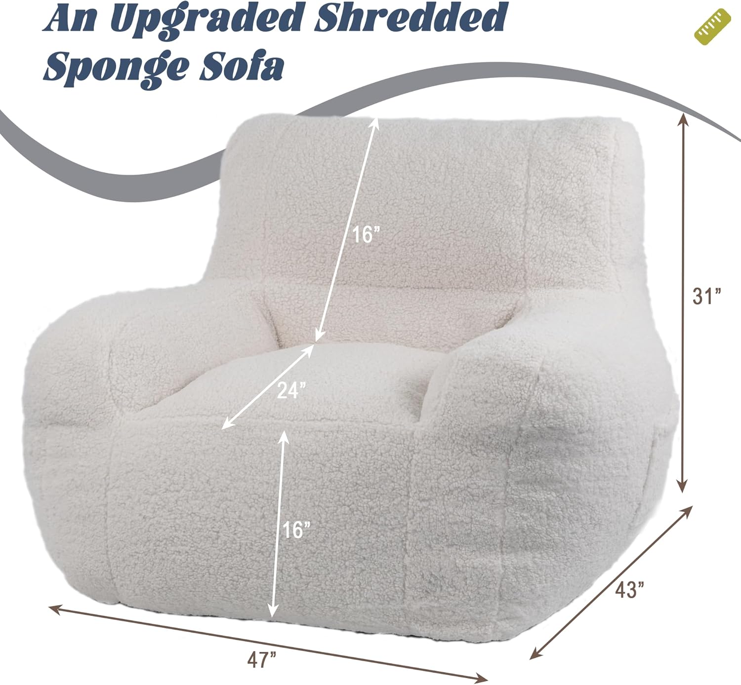 - Product Description: Measuring 47β x 43β x 31β, this bean bag chair is great for everyone; After unpacking, allow the fluffy bean bag sofa to sit for about 48 hours to regain its full elasticity; Expect this lambswool adult been bag sofa to bring you a fun-filled experience