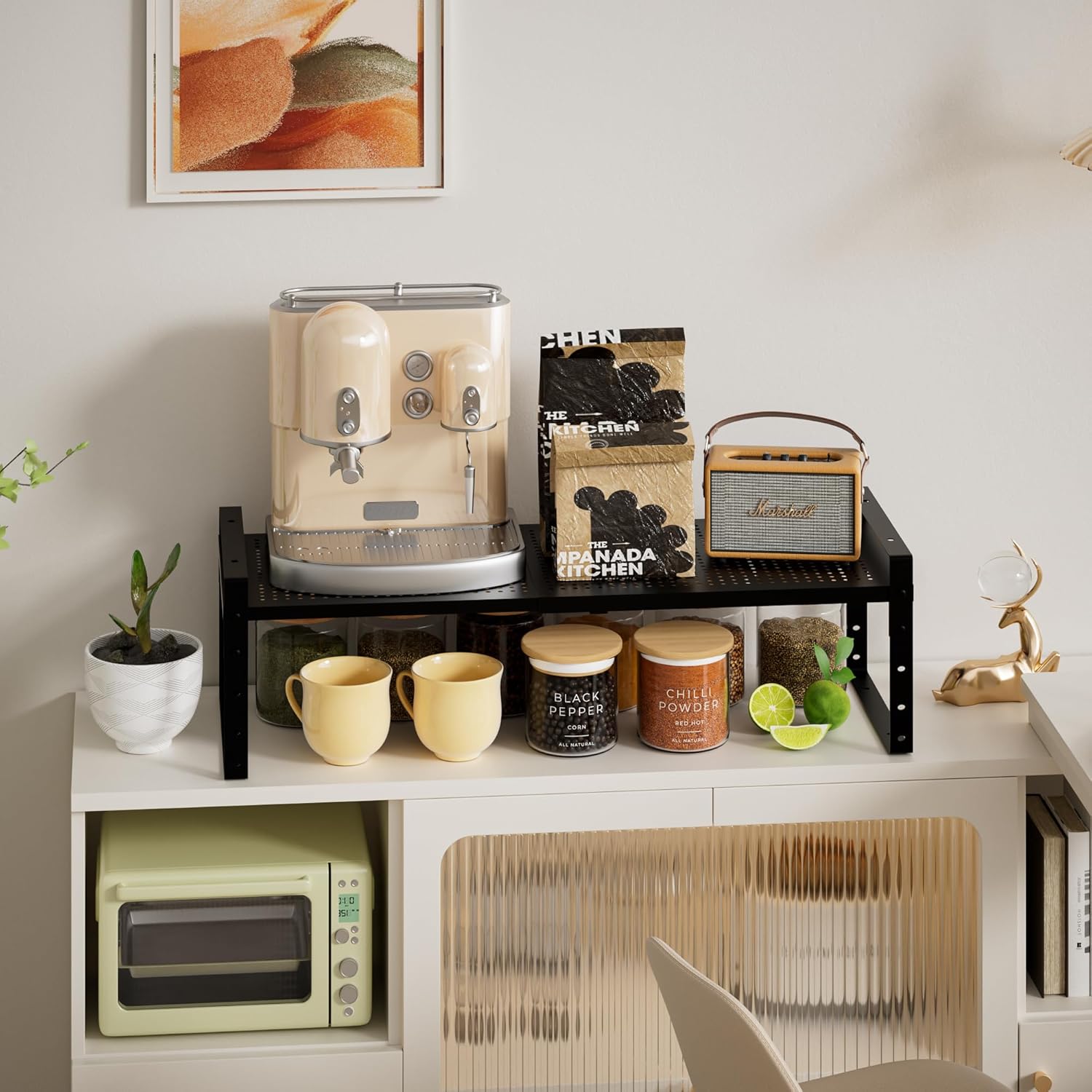 Expandable,Adjustable & Stackable Spice Rack, Cabinet Kitchen Countertop Shelf Organizer,Metal Pantry Storage Shelves - Space-Saving Storage Solution(1Pack/Black/Large)