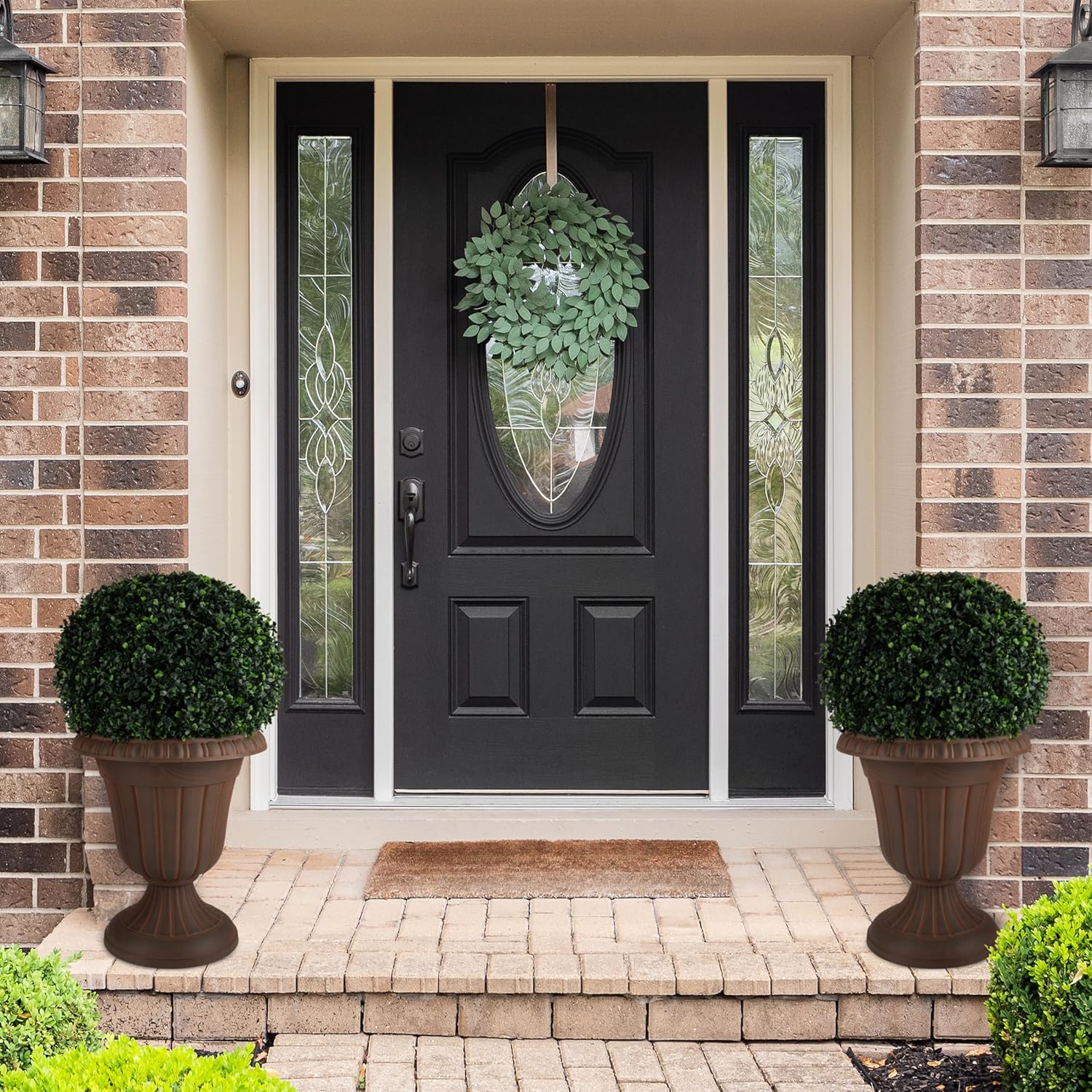 - YEAR-ROUND USE - The recycled polypropylene material is tough enough to endure heat and cold, so you can enjoy these porch planters outdoors all year long. Use the garden planter urns for flowers in the summer, then display artificial greenery in winter.