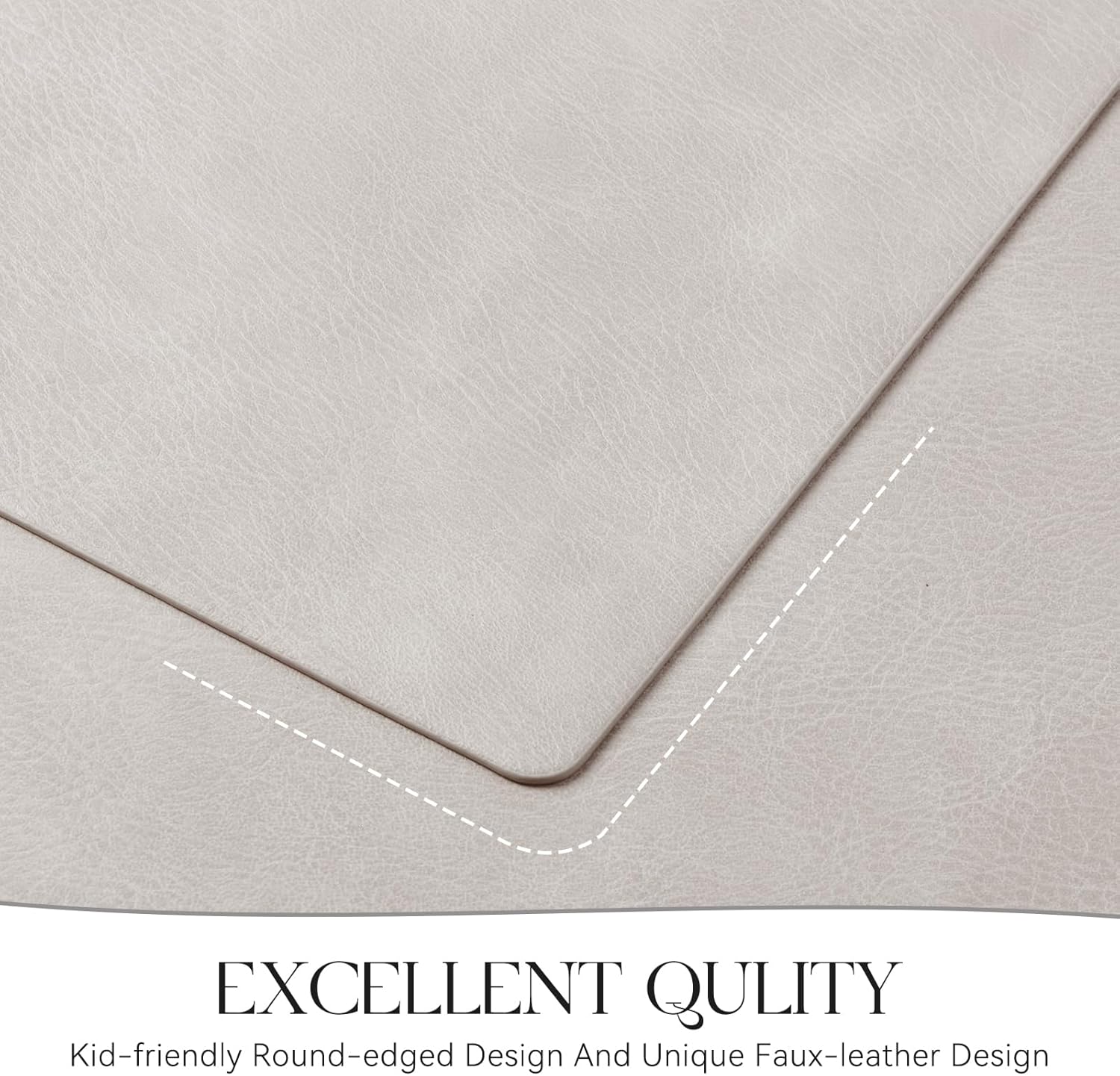 MOSAYT Vinyl Placemats Set of 6-12 X 17 Inch - Faux Leather 100% Waterproof Oil-Proof Wipeable PU Place Mats, Heat Resistant Reversible Table Mats for Kitchen, Dining, Outdoor (Light Grey)