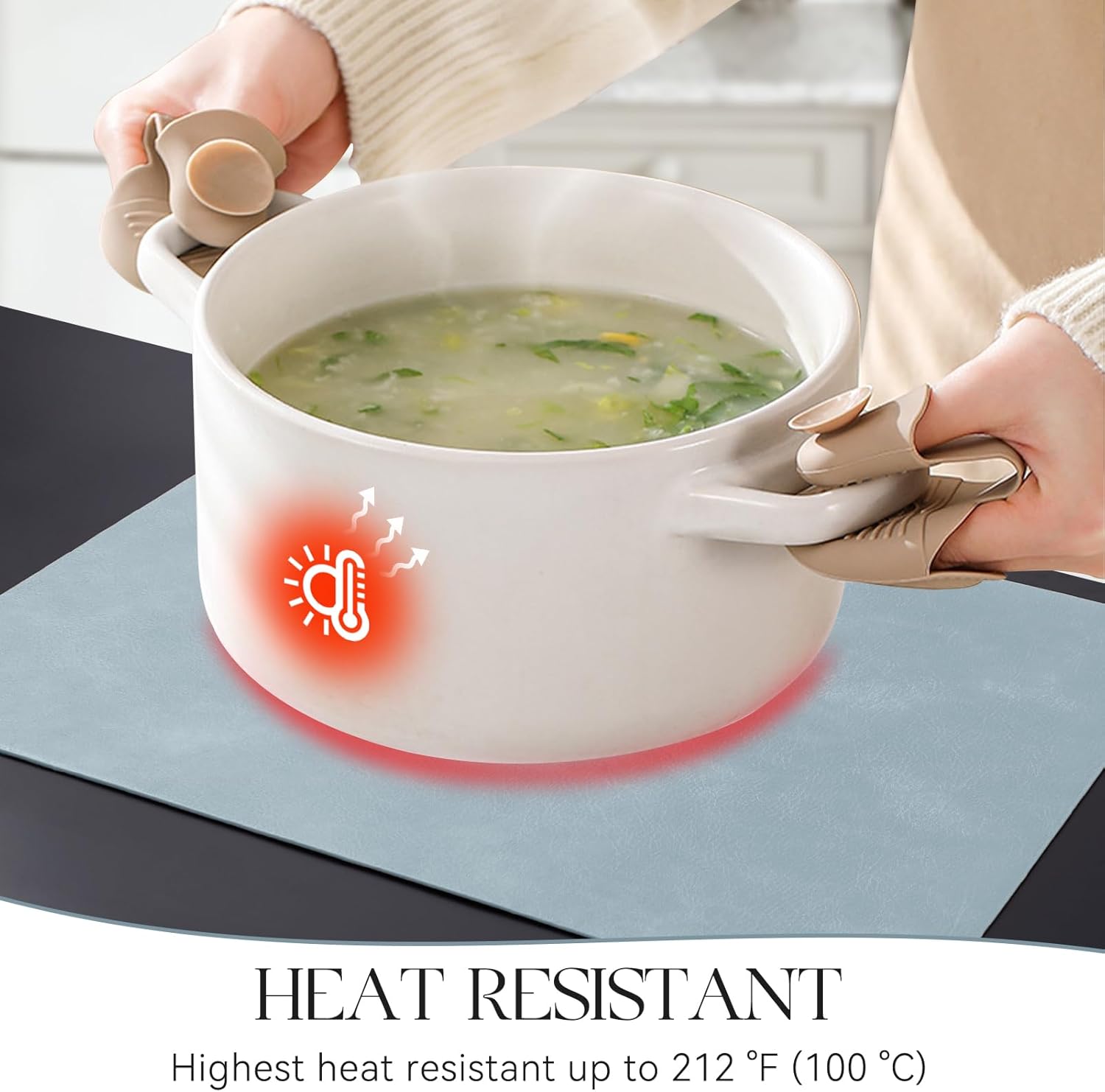 - PROTECT YOUR TABLE: Our placemats are 2mm thick and heat-resistant up to 212β/100β, which can protect your table from high temperatures and reduces noise from plates and flatware. It is an excellent choice to protect protect the surface of your dining table from hot dishes and liquid spills.