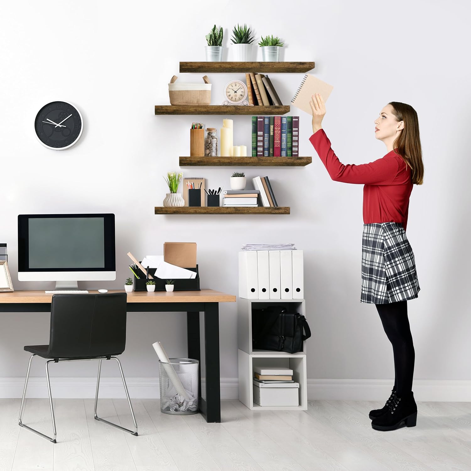 Sorbus Floating Shelves for Wall - 24" Bathroom Shelves, Wall Decor for Bedroom, Kitchen, Living Room, Home Decor & Book storage - Mounted Floating Shelf with Invisible Brackets (Rustic Brown, 4 Pack)