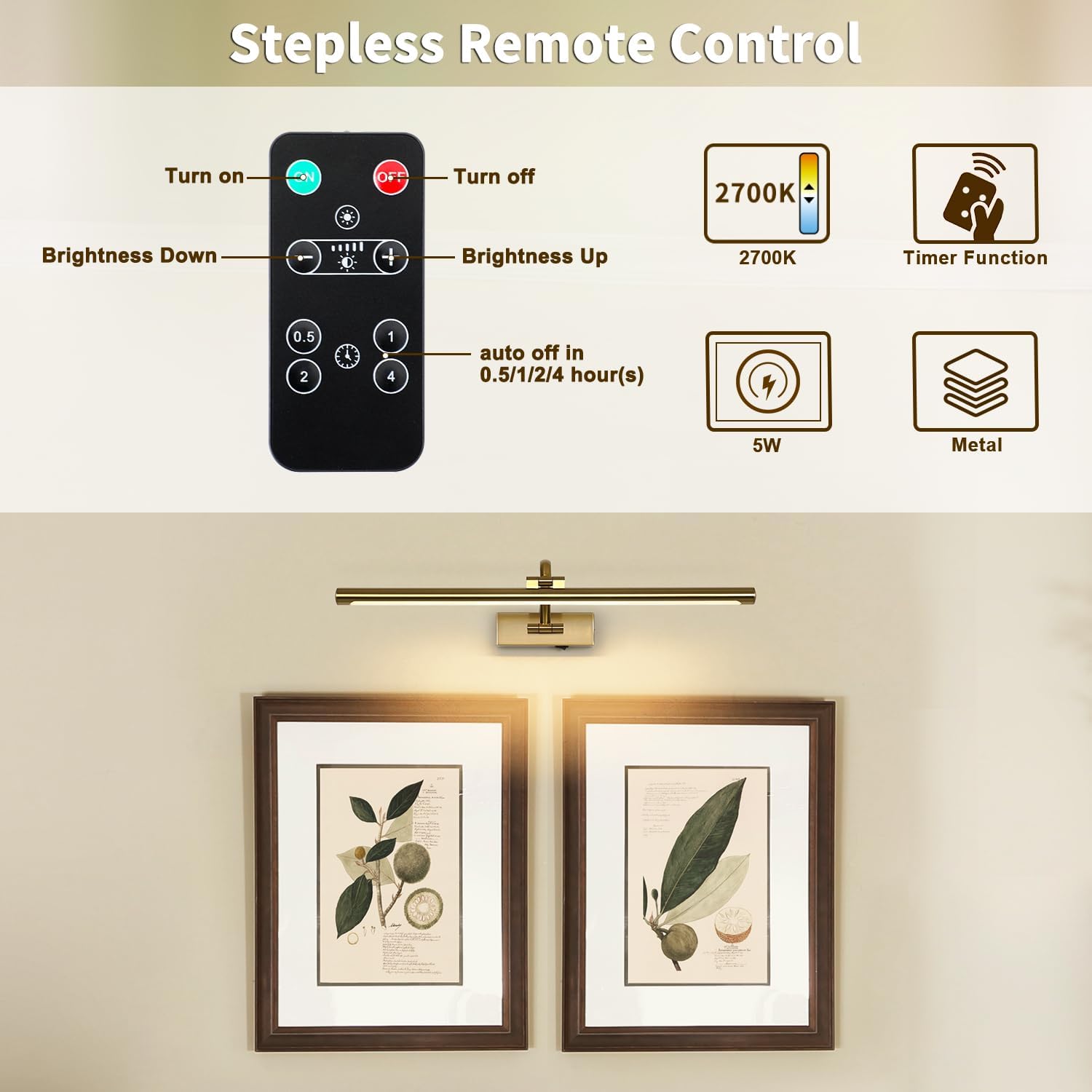 - Premium Metal Material: Adopts sturdy brass metal material, the LED picture lights are durable for use. The art light is a perfect lighting solution for lighting up your indoor space.