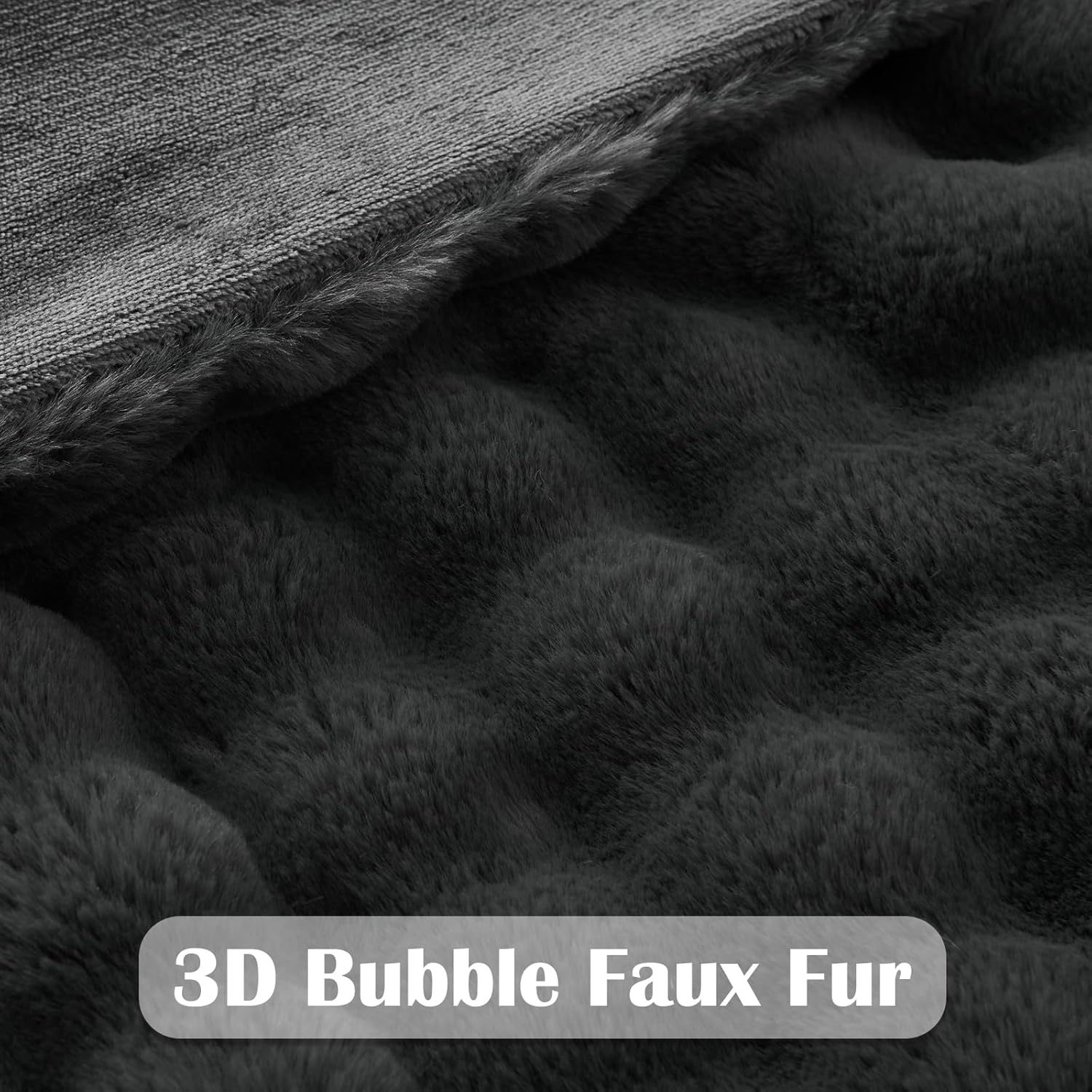NEWCOSPLAY Faux Fur Throw Blanket Grey Bubble Blanket Thick Warm Soft for Couch Sofa Bed 550GSM (Grey, Throw(50"x60"))