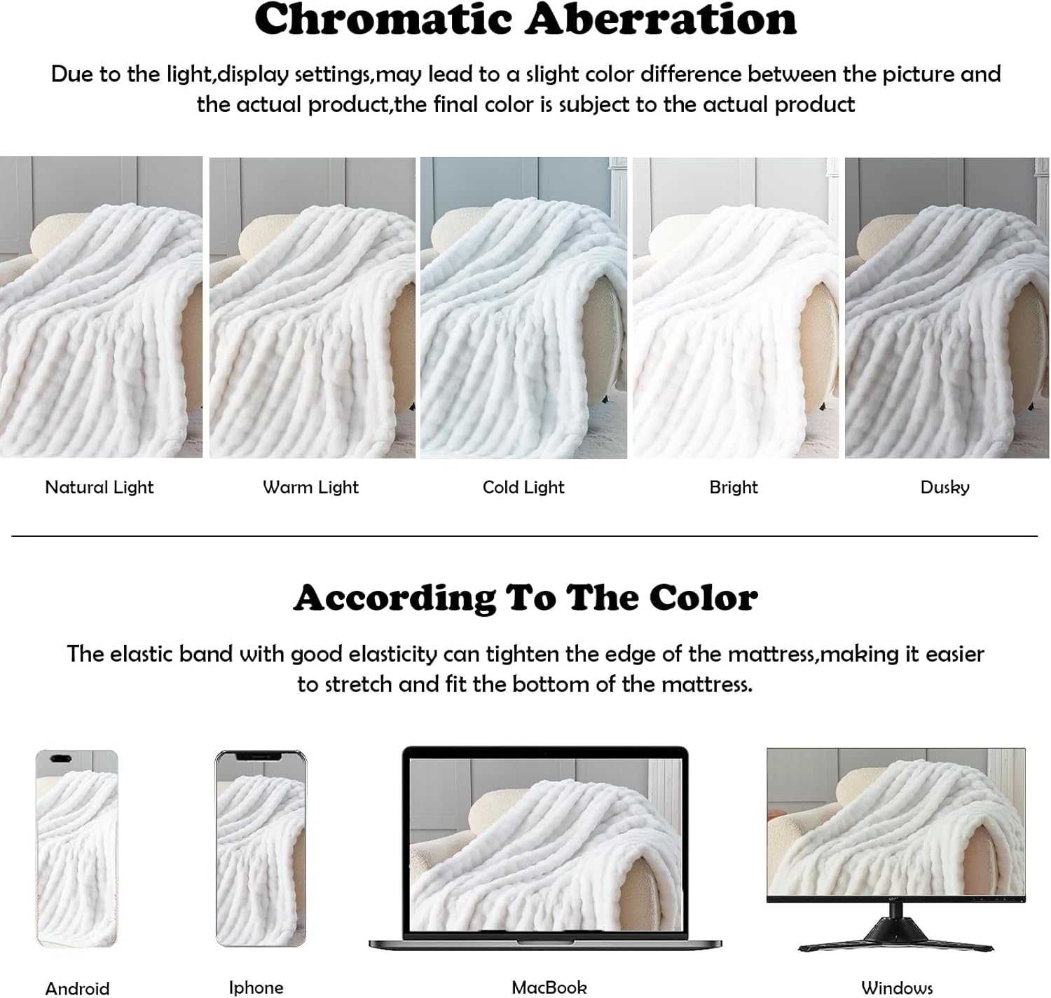 NEWCOSPLAY Faux Fur Twin Blanket White Bubble Blanket Thick Warm Soft for Couch Sofa Bed 550GSM (White, Twin(60"x80"))