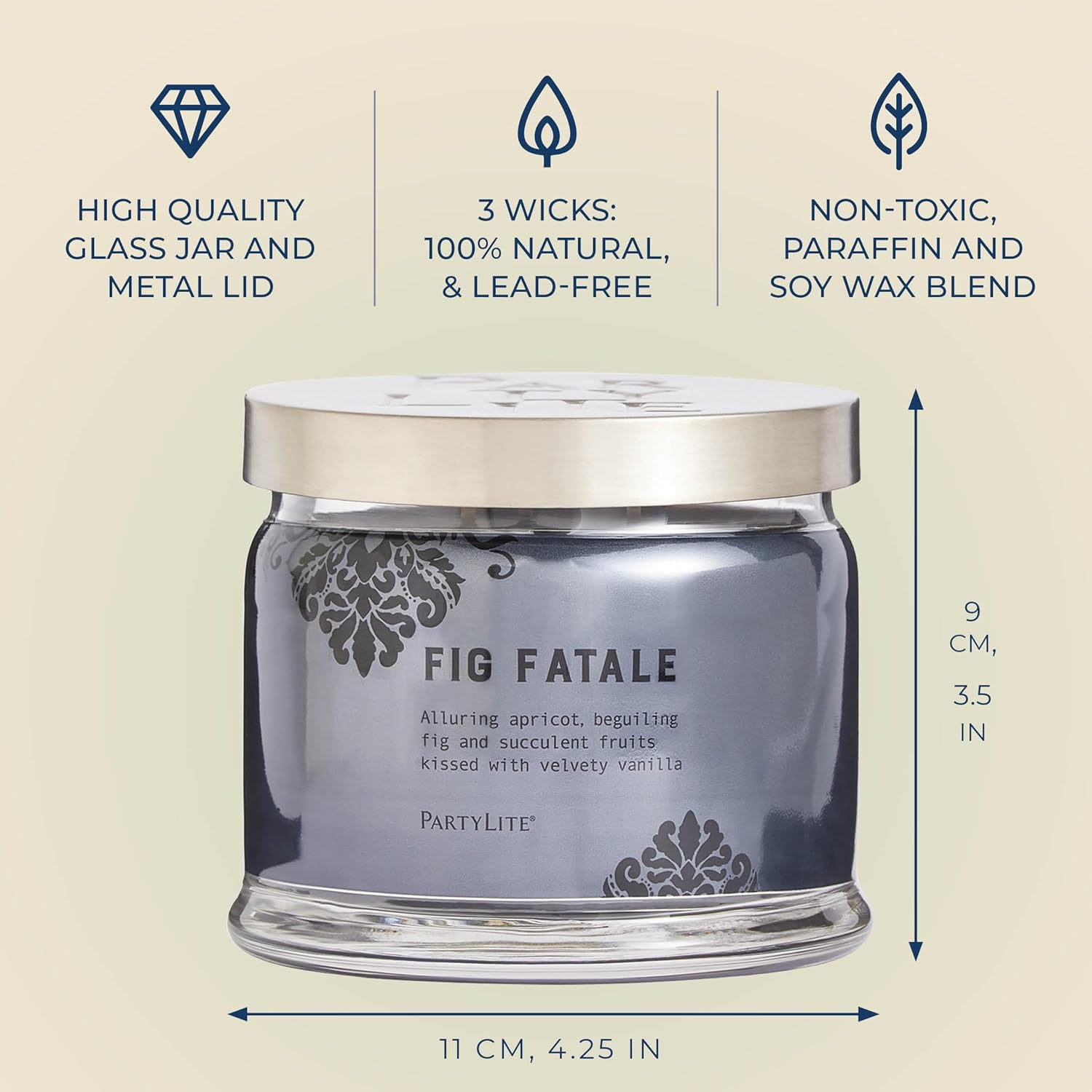 PartyLite Fig Fatale Scented, Notes of Apricot, Green Fig, Peach, Mango, Strawberry and Vanilla,13.2oz 3-Wick Jar Candle, 45 Hour Burn Time, Luxurious Fragrance, Perfect for Gifting