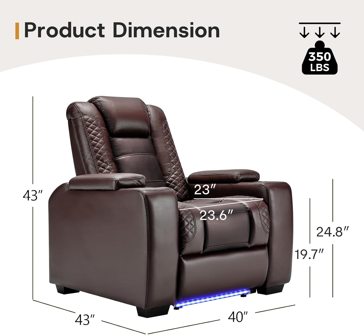 - Blue Atmosphere Lighting: Every detail of our faux leather recliner is made for your home theater. No matter the type of movie theater seating you have in mind, creating the right feel is critical to the ambiance of your space. To create a real cinematic atmosphere, this movie theater chairs with blue led lights can bring a touch of light in the dark. You can always experience the feeling of home theater, make your movie night simply perfect