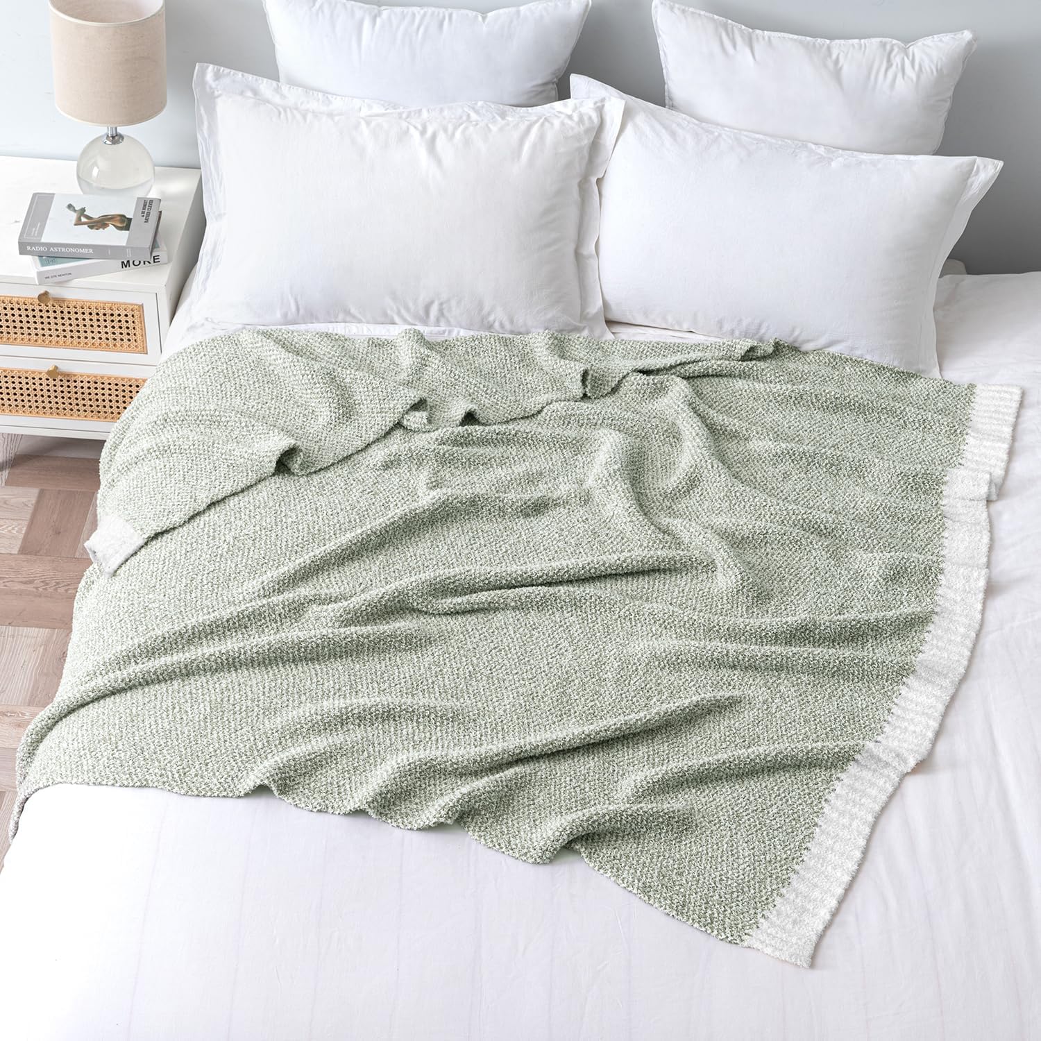 - 【Unique Color Design】Knitted with two different color yarn, our throw blanket shows unique cute color on both side, simple and elegant. Color may be different in different light or on different screen.