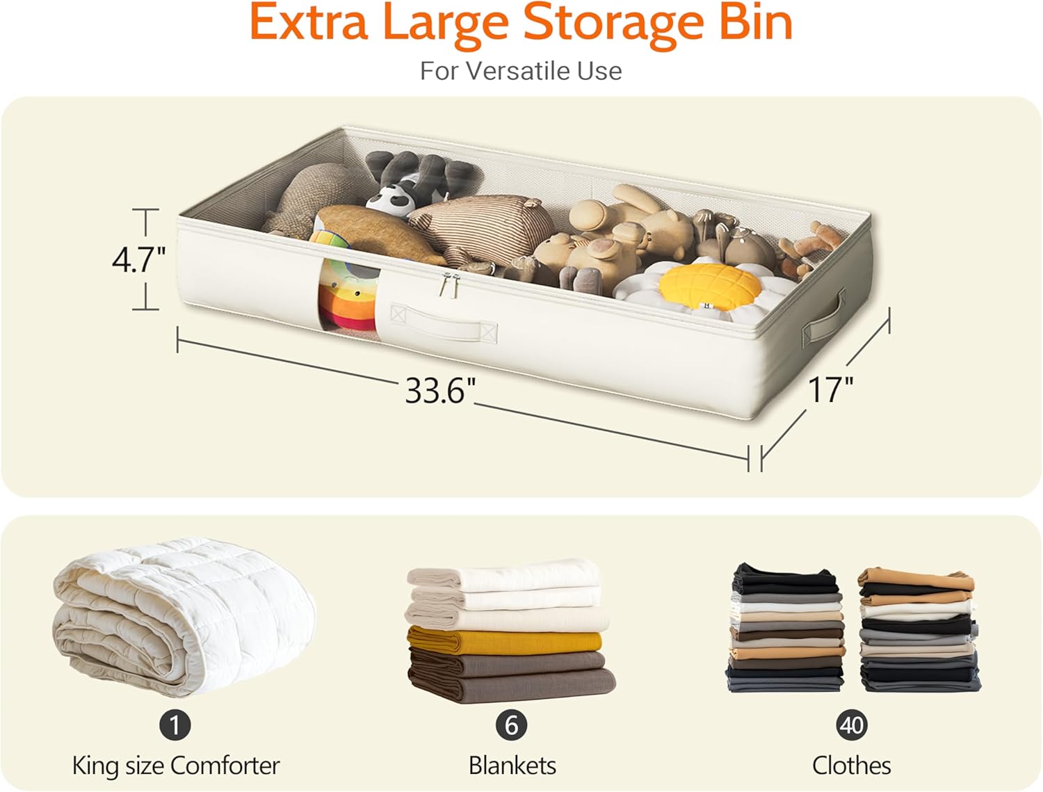 - Effortless Handling: Designed for your convenience, our storage bag features three reinforced handles on the front and sides. Easily pull it out from under the bed without hassle. Handling has never been this easy!