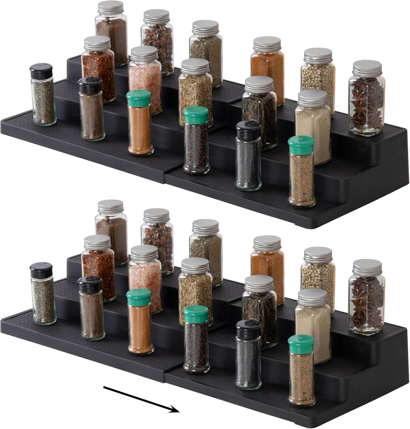 SIMPLEMADE 3-Tier Spice Rack Organizer - Versatile Storage Shelf for Kitchen, Bathroom, Bedroom & Office, Set of 2, Expandable Black