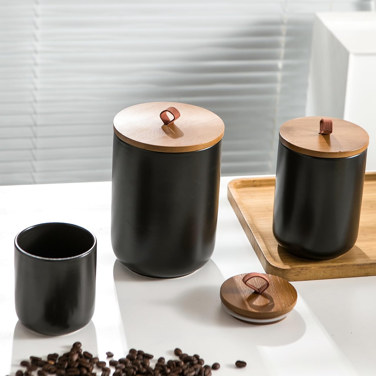 - Durable Ceramic & Airtight Bamboo Lids: Made from thick ceramic, these kitchen Canisters are built to last and resist daily wear. The natural bamboo lids come with food-safe silicone seals that help keep contents fresh by creating an airtight barrier. Ideal for dry food storage.