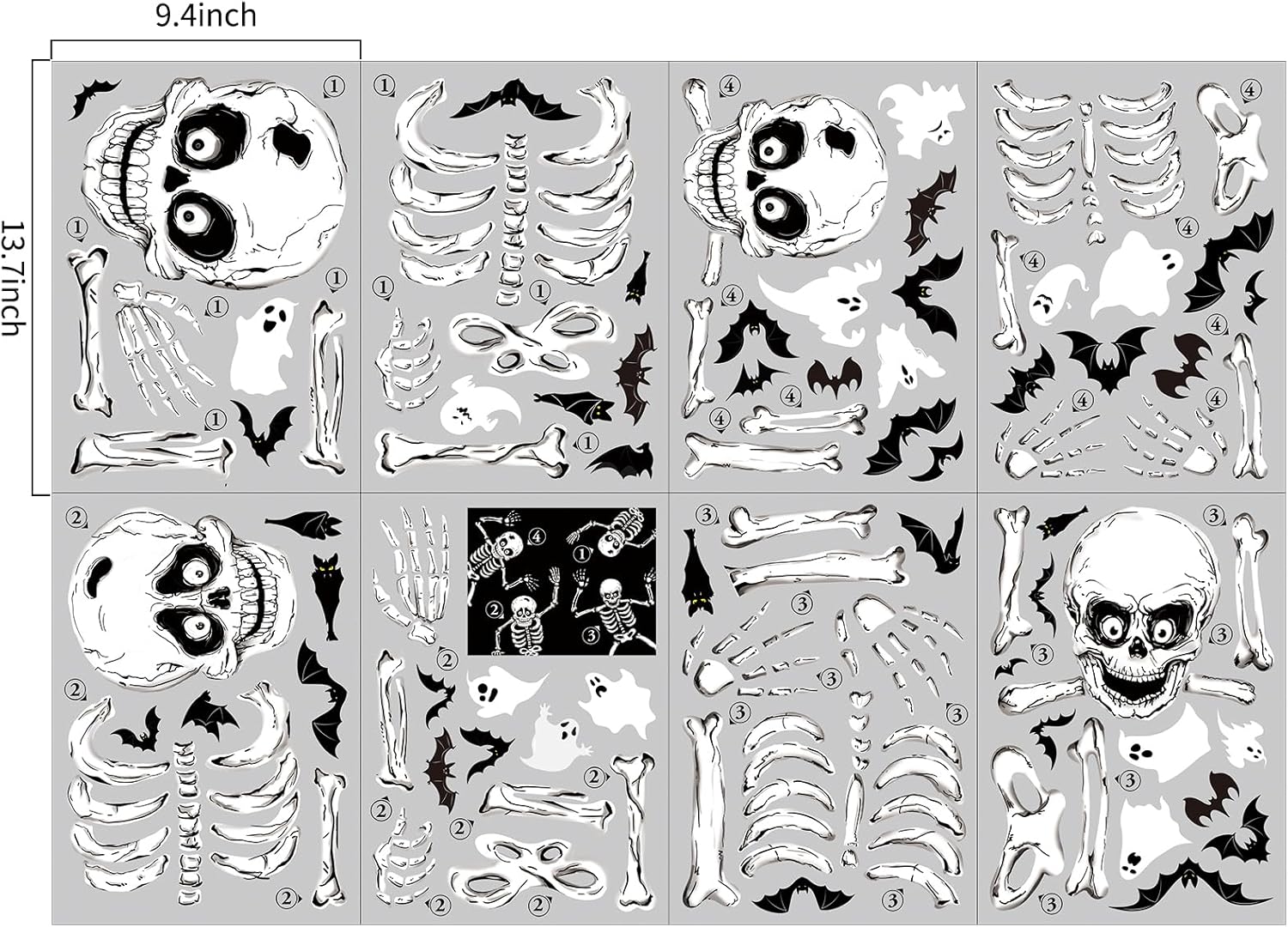 - HALLOWEEN WINDOW STICKERS: Set includes 8 sheets of creative Halloween window stickers featuring adorable bats, ghosts and skeletons. Decorate your windows and mirrors with these charming stickers to instantly bring a festive and joyful atmosphere to your home and add Halloween fun.