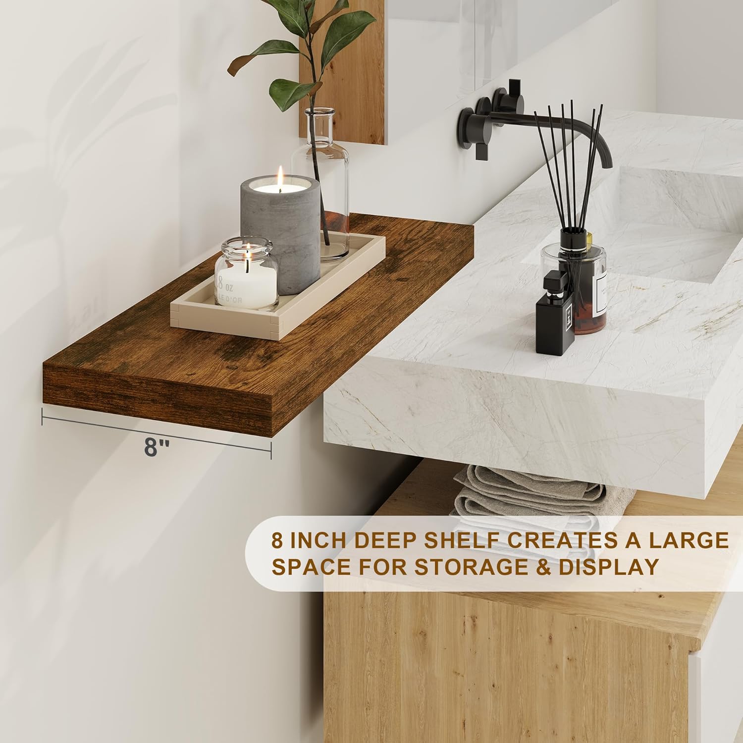 Fun Memories Floating Shelves, 8 Inch Deep Floating Shelves, Rustic Wood Fireplace Mantel 48 in Long, 48 x 8 Floating Wall Shelves for Living Room, Kitchen, Bedroom, Rustic Brown, 1 Pack