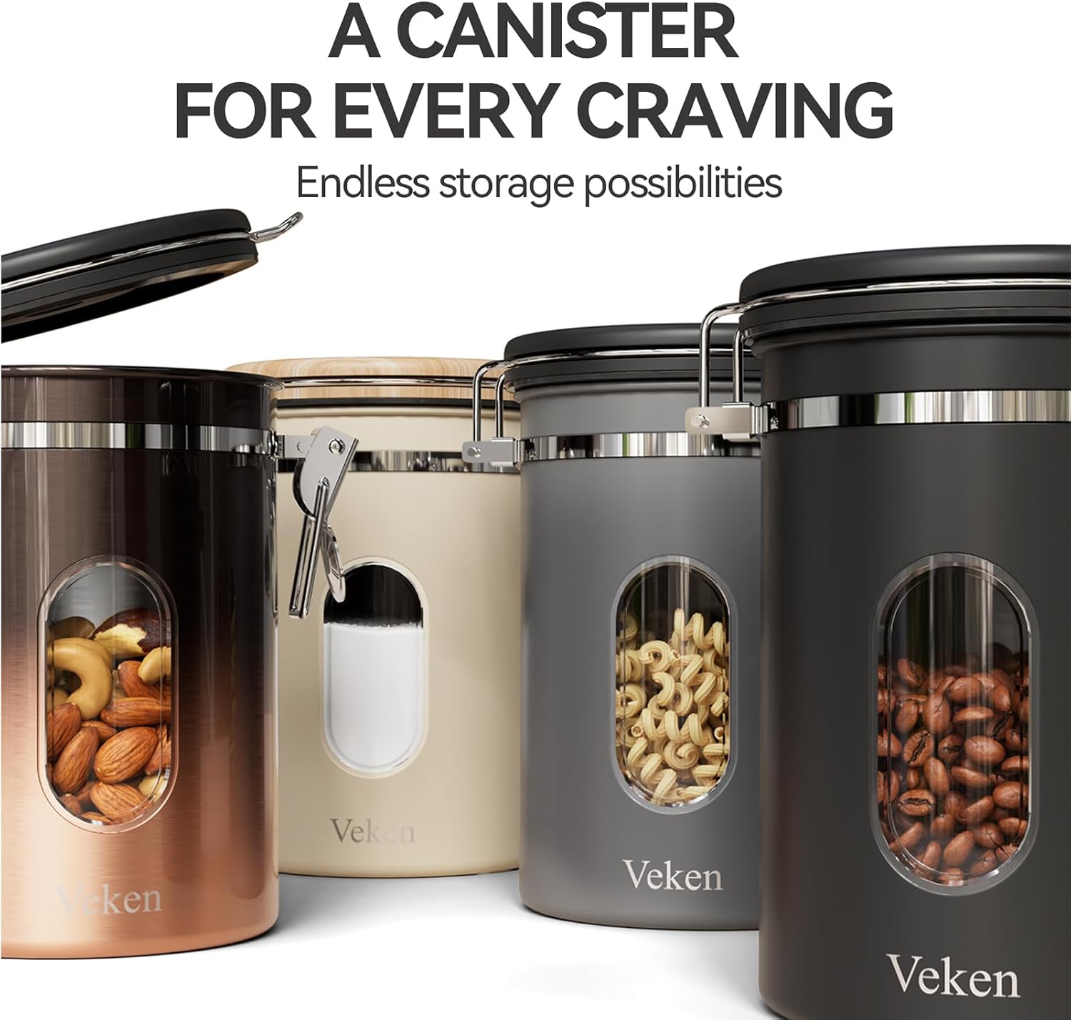- Why purchase this product:The affordable price, user-friendly functions and elegant design makes this coffee canister a great addition to your kitchen; In addition, our coffee canister is a great storage container for friends and family; Purchase one today and enjoy the benefits of owning a Veken coffee canister