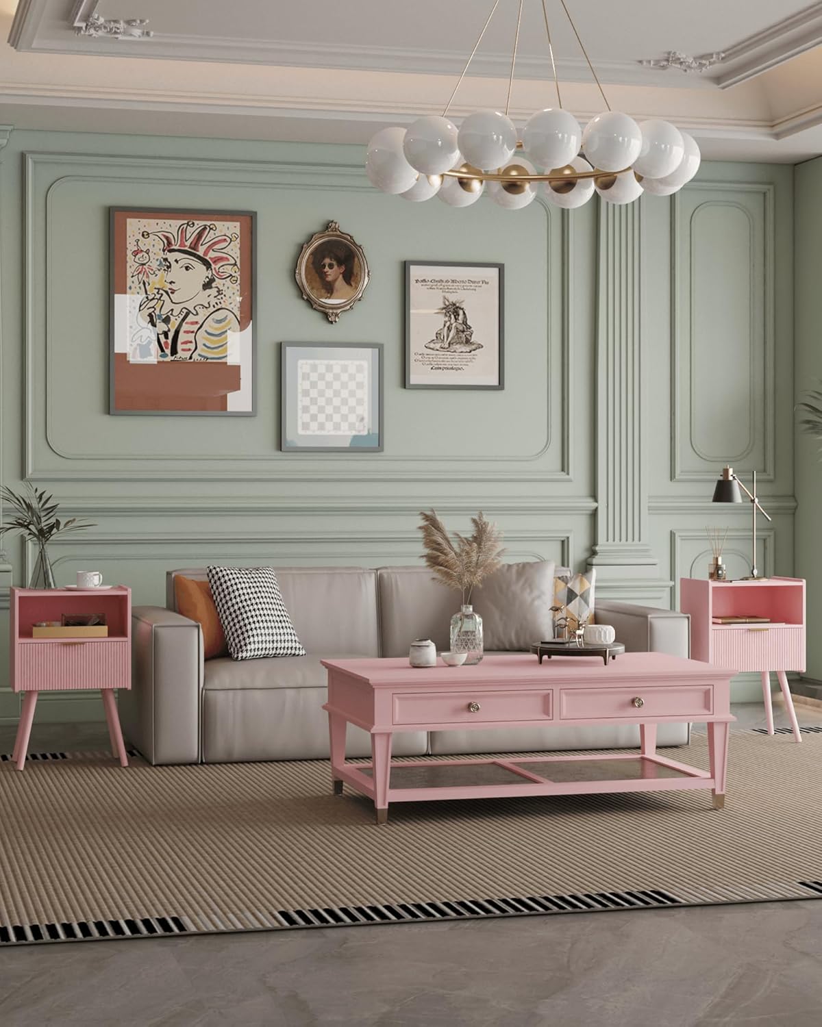 Nightstand,Modern Bedside Table with Storage Drawer and Open Wood Shelf, Accent Night Stand with Solid Wood Legs for Living Room, Bedroom and Small Spaces,Easy Assembly (Pink)