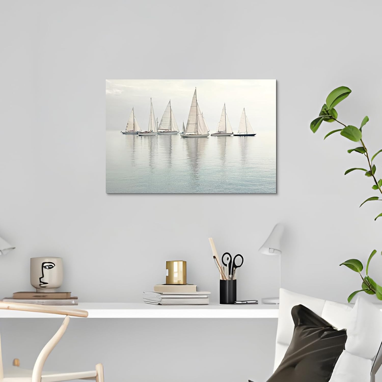 - Serene Seascape Ambiance: The 24x16β white nautical wall decor captures the sailboat on a calm sea, bringing a sense of peace and relaxation to your home or office. The artwork features a palette of gray and white tones with touches of aqua green, creating a fresh and soothing atmosphere