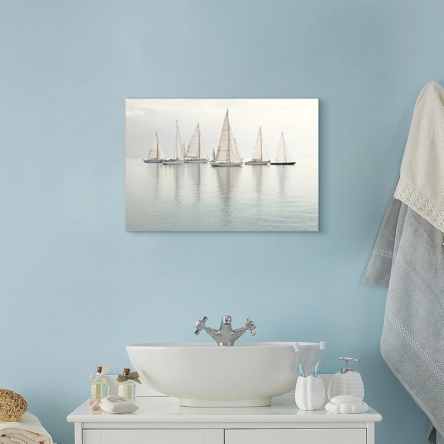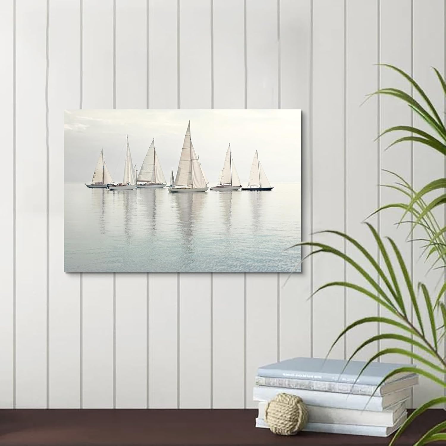- Serene Seascape Ambiance: The 16x11β ocean wall art canvas captures the sailboat on a calm sea, bringing a sense of peace and relaxation to your home or office. The artwork features a palette of gray and white tones with touches of aqua green, creating a fresh and soothing atmosphere