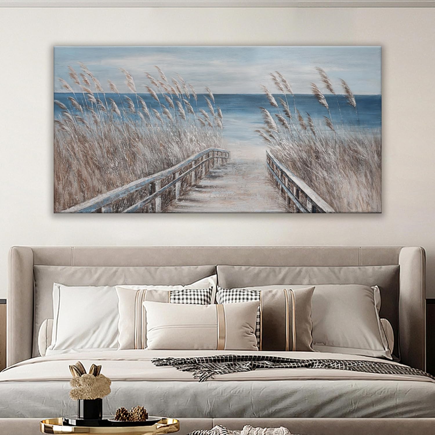 Canvas Wall Art Decor Large Wall Art for Living Room Vintage Coastal Wall Art Prints Landscape Beach Wall Art Decorations Blue Artwork for Walls Bedroom Office Kitchen Wall Decor 24" X 48"