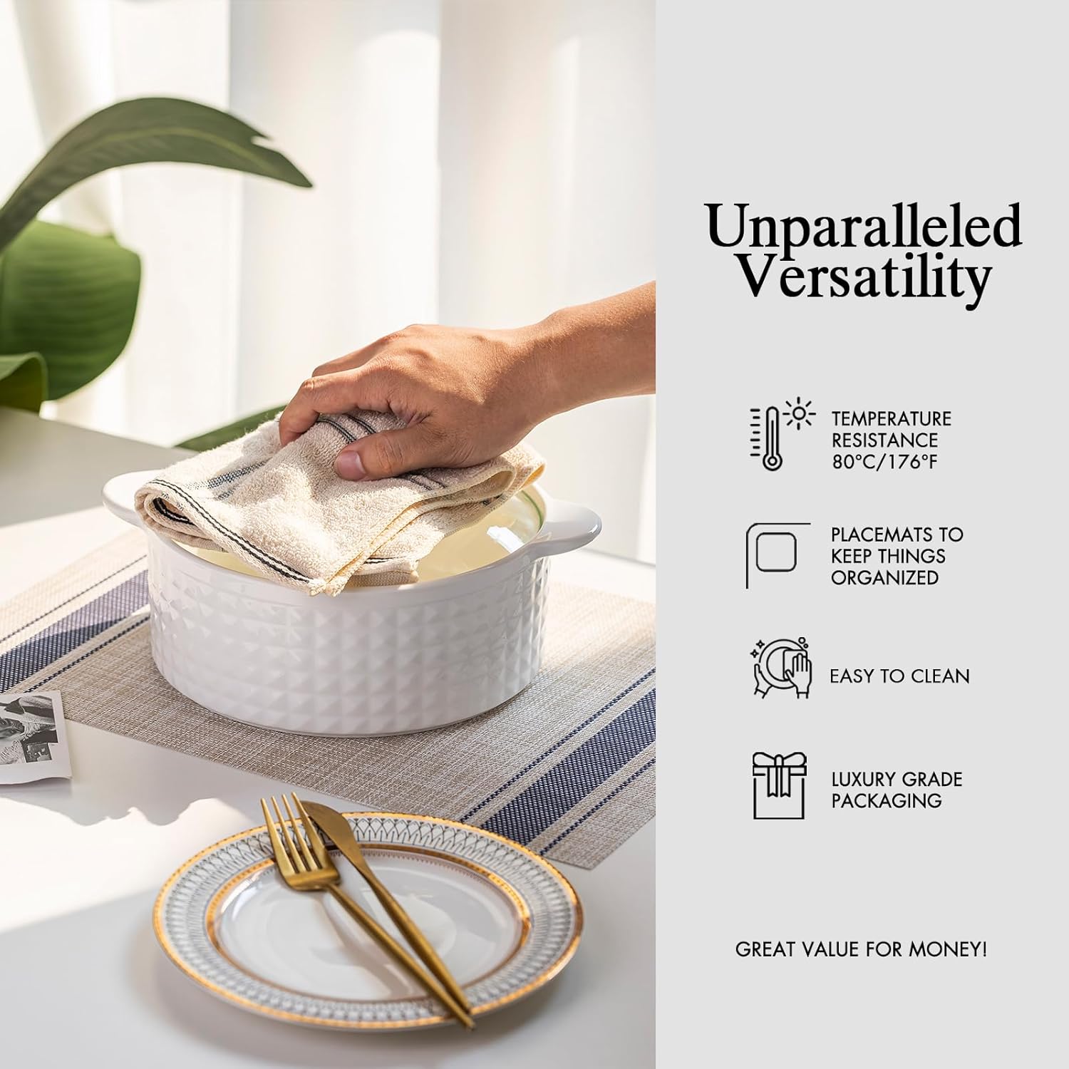- Elegant and Practical Design: Featuring a luxurious woven texture with precision cutting, Onebento placemats bring a touch of sophistication to any dining setting. Their versatile design suits both indoor and outdoor use, making them ideal for daily meals, special occasions, or as thoughtful gifts for housewarmings, weddings, and more. With place mats on the table, your table setting feels extra inviting – for both everyday meals and parties.