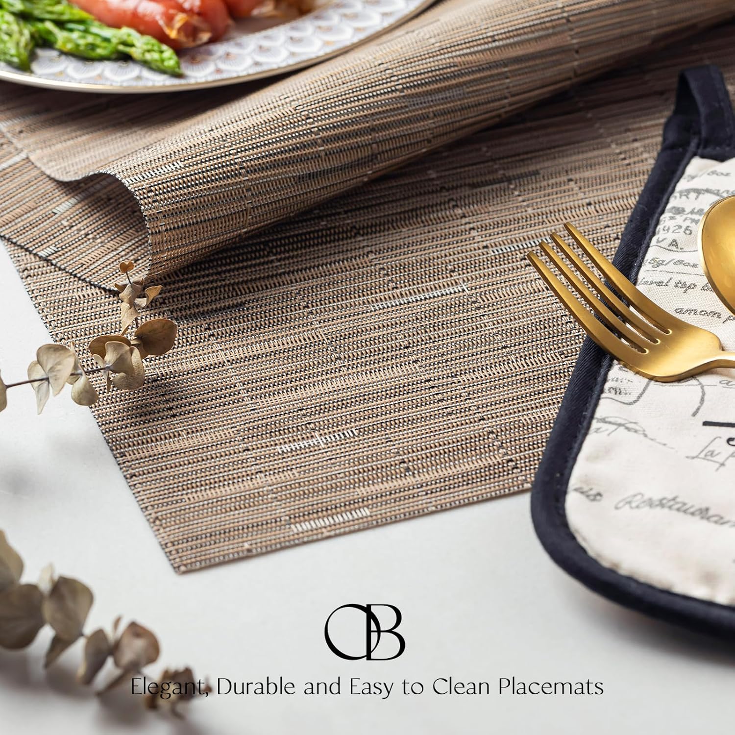Placemats Set of 12 - Easy Clean Woven Vinyl Placemats for Dining Table, Indoor/Outdoor Place Mats, Washable PVC Table Mats (Light Brown)