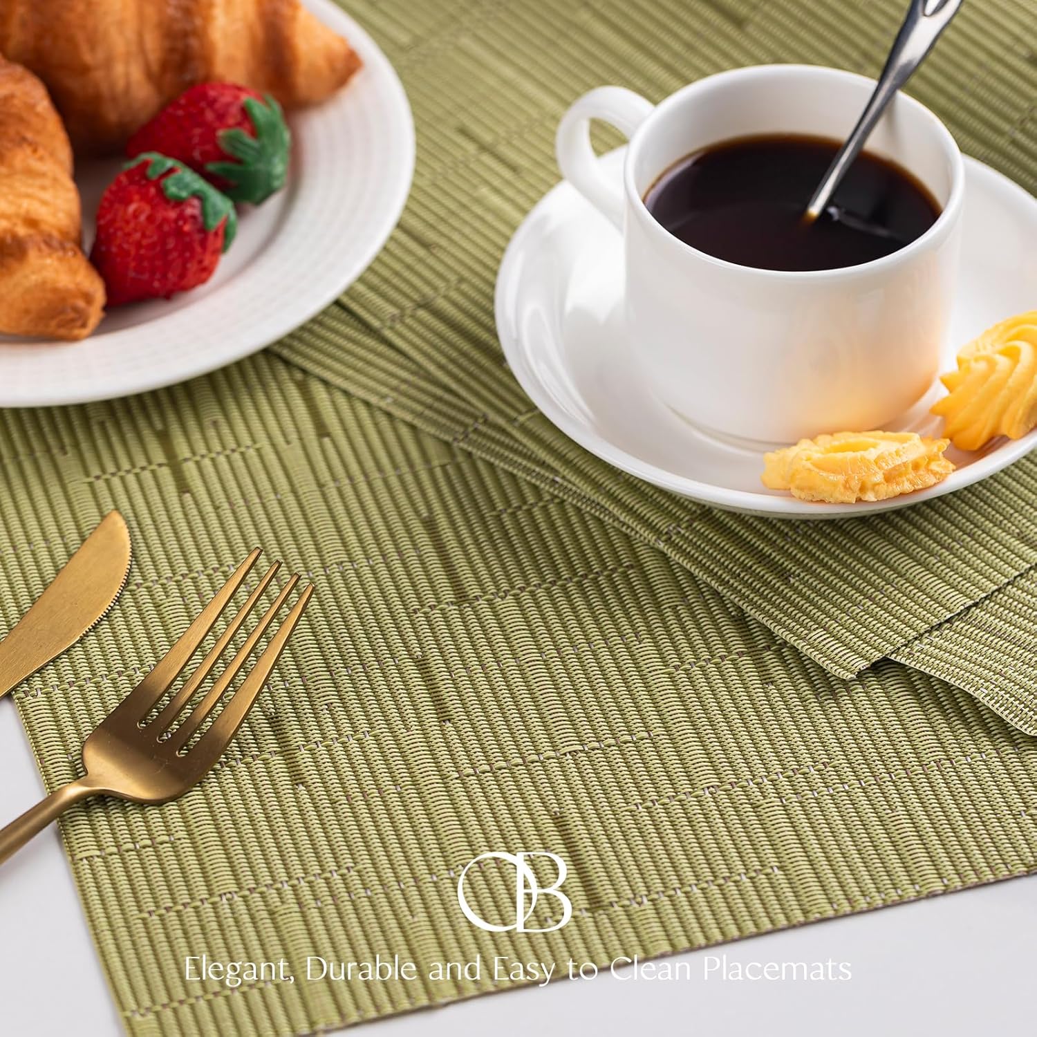 Placemats Set of 8 - Easy Clean Woven Vinyl Placemats for Dining Table, Indoor/Outdoor Place Mats, Washable PVC Table Mats (Pea Green)