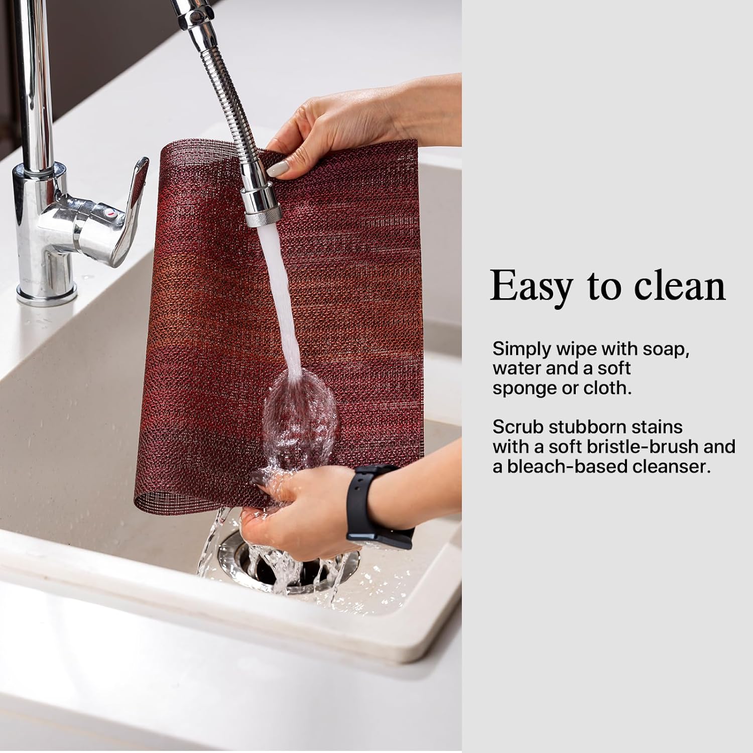 Placemats Set of 12 - Easy Clean Woven Vinyl Placemats for Dining Table, Indoor/Outdoor Place Mats, Washable PVC Table Mats(Pomegranate Parade)