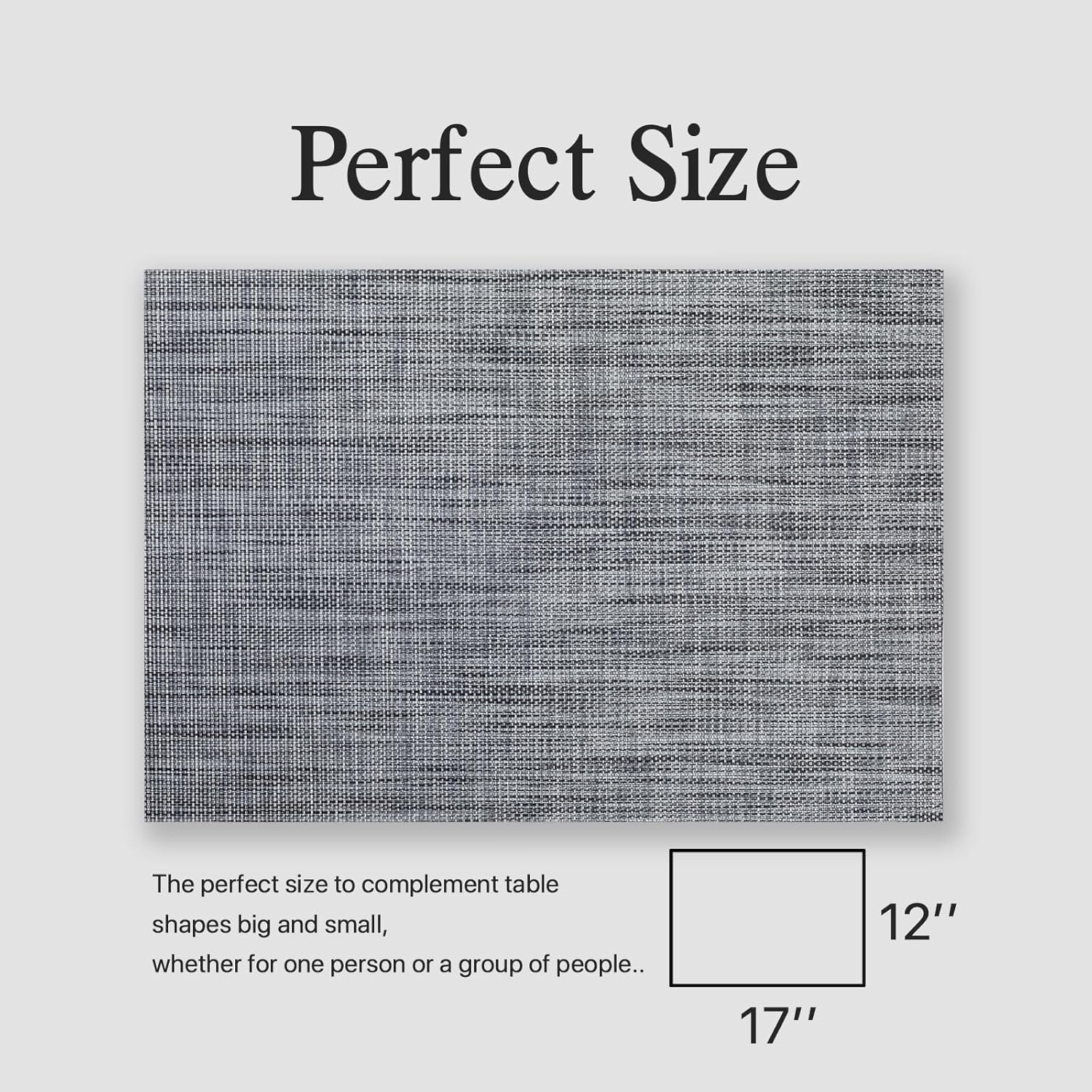 Placemats Set of 6 - Easy Clean Woven Vinyl Placemats for Dining Table, Indoor/Outdoor Place Mats, Washable PVC Table Mats(Dark Gray)