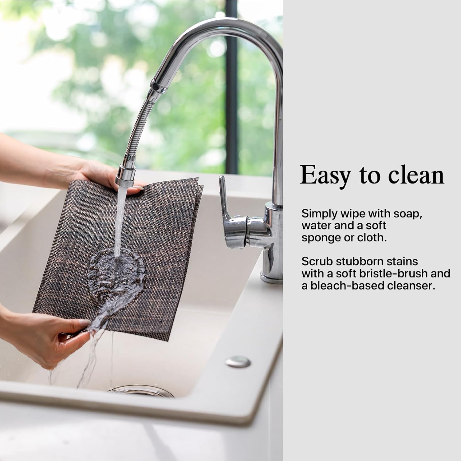 - Premium Quality and Durability: Onebento placemats are made from a high-quality blend of 70% PVC and 30% polyester, offering exceptional durability and aesthetic. This combination ensures long-lasting use and superior protection for your dining table, making it a perfect choice for quality-required consumers.